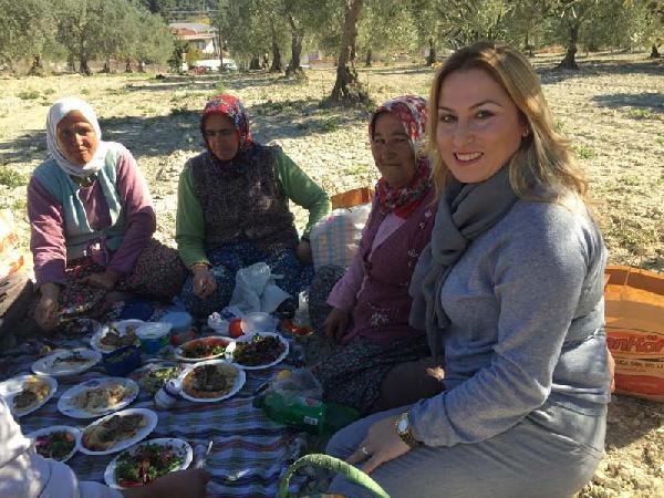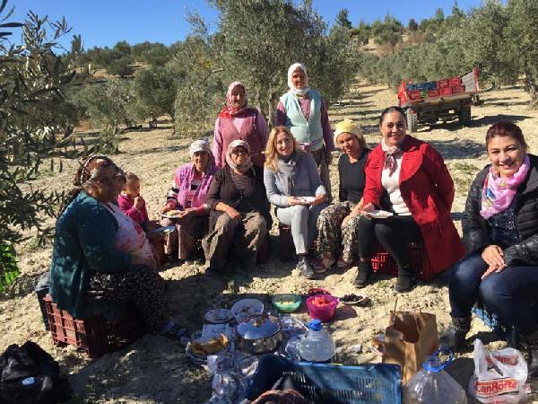 MANİSA'nın Akhisar ilçesindeki Kent Konseyi Kadın Meclisi üyeleri tarlada zeytin toplayan kadın işçilerle bir araya gelerek sofralarına konuk oldu.