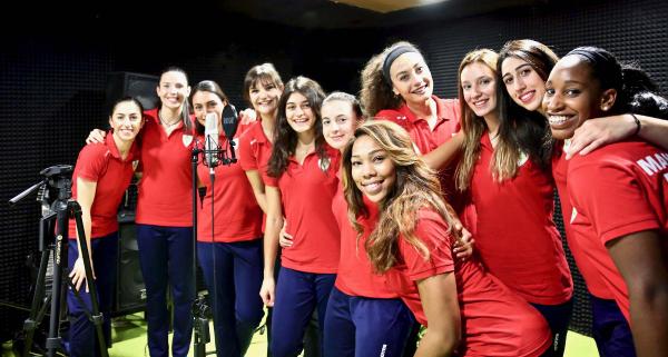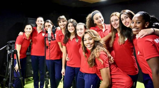 Bayan Voleybol takımı, Manisa Büyükşehir Belediyespor Marşı'nı seslendirmek için stüdyoya girdi.