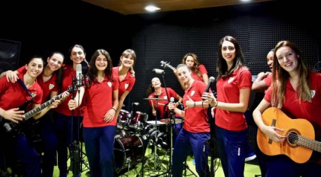 Kadın voleybol takımı sahadaki yeteneklerini müziğe taşıdı