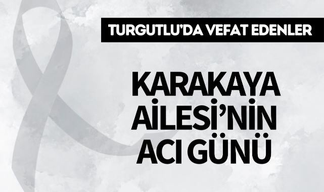 Karakaya Ailesi’nin Acı GünüTURGUTLU İlçesi sakinlerinden Ummuhan Karakaya hakkın rahmetine kavuştu. Cenazesi bugün ikindi namazına müteakip Yakuplar Camii’nde kılınan cenaze namazının ardından Yakuplar Kabristanı'nda toprağa verilecek.Yakınları: Oğlu: Mehmet Karakaya Eşi: Merhum Salih KarakayaMerhumeye Allah'tan rahmet, yakınlarına başsağlığı dileriz.