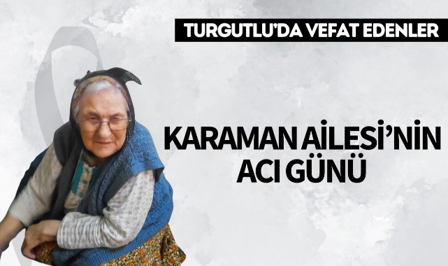 Karaman Ailesi’nin Acı Günü TURGUTLU İlçesi sakinlerinden merhum Abdil Karaman’ın eşi Hacere Karaman (89) hakkın rahmetine kavuştu. Cenazesi bugün öğle namazına müteakip Subaşı Cami’nde eski kabristanda toprağa verilecek. Yakınları: oğulları Mustafa Karaman, Rahim Karaman, Ramazan Karaman, Ali Karaman, kızları Huriye Gültekin, Ayşe Özbek, damatları Kadir Gültekin, Mustafa ÖzbekMerhumeye Allah’tan rahmet yakınlarına baş sağlığı dileriz.