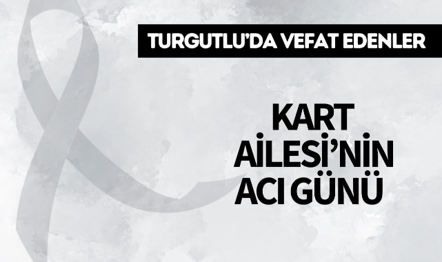 Kart Ailesi’nin Acı GünüTURGUTLU İlçesi sakinlerinden Merdiye Kart hakkın rahmetine kavuştu. Cenazesi bugün öğle namazına müteakip Göçmen Camii’nde kılınacak cenaze namazının ardından yeni kabristanda toprağa verilecek.Yakınları: kardeşleri merhum Fehmi Samtaş, Rahim Samtaş, Besim Samtaş, oğulları Osman Kart, Şahin Kart, Fehmi KartMerhumeye Allah'tan rahmet, yakınlarına başsağlığı dileriz.