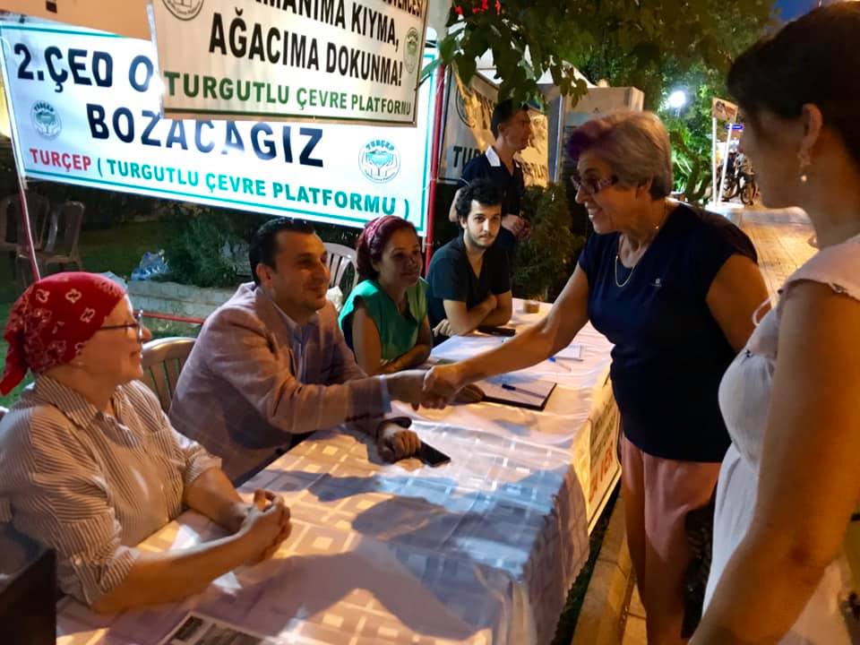 CHP Manisa Milletvekili Bekir Başevirgen Turgutlu Çevre Platformu (TURÇEP) standını ziyaret ederek, Çaldağı’ndaki madenin kapatılması için başlatılan imza kampanyasına imzasıyla katılarak destek verirken, ayrıca vatandaştan da imza topladı.