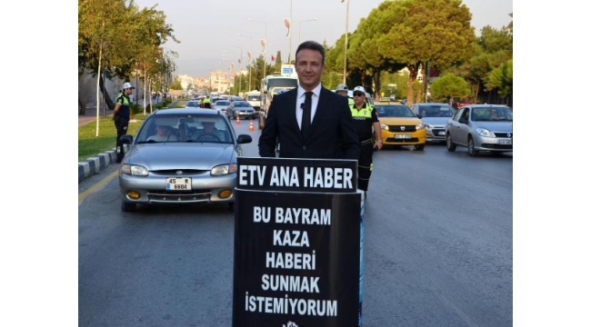 Kazalara dikkat çekmek için trafiğin ortasında ana haber bültenini sunduİlker KILIÇASLAN / MANİSA, (DHA)- MANİSA'da yayın yapan yerel ETV televizyonunun ana haber spikeri Mustafa Başgülşen, Kurban Bayramı'nda olası bir trafik kazasının yaşanmaması konusunda farkındalık yaratmak için ana haber bültenini 'Bu bayram kaza haberi sunmak istemiyorum' sloganıyla, yol ortasında akan trafiğin içinde sundu.Kurban Bayramı ile birlikte 9 günlük tatilde olası trafik kazalarının yaşanmaması konusunda farkındalık yaratmak ve trafik kurallarına dikkat çekmek amacıyla Manisa'da yayın yapan yerel televizyon kanalı ana haber spikeri Mustafa Başgülşen, farklı bir uygulamaya imza attı. Spiker Başgülşen, 'Bu bayram kaza haberi sunmak istemiyorum' sloganı altında haber bültenini, İstanbul-İzmir Karayolu'nda akan trafiğin içinde sundu. Canlı yayına Manisa İl Emniyet Müdür Yardımcısı Trafikten Sorumlu İbrahim Erkalaycıoğlu, Trafik Tescil Şube Müdürü Hüseyin Görüşlü, Bölge Trafik Müdürü Ali Koyuncu da konuk oldu.Türkiye geneli trafik kazalarının çoğunlukta bayram tatillerinde daha fazla arttığını belirten Başgülşen, amacının özellikle bayram trafiğine çıkan sürücülere trafik kuralları uyması konusunda dikkat çekmek olduğunu ifade etti.Mustafa Başgülşen, geçen sene de kazalara dikkat çekmek için akan trafiğin ortasında haber bültenini sunmuştu.
