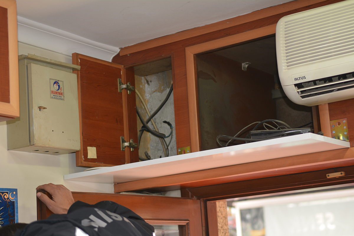 Turgutlu İtfaiyesi'ne bu gün saat 13.00 de yapılan ihbarla, Altay Mahallesi Tuhafiyeciler Sokaktaki İbrahim Yalçınkaya’a ait kuyumcu dükkanında bir kedinin mahsur kaldığı bildirildi. İhbar üzerine harekete geçen itfaiye ekipleri, kepenklerin toplandığı dolap kapısını açarak özel bir aparatla kediyi sıkıştığı yerden çıkardı . Özel bir aparat yardımıyla yakalanan kedi, sokağa bırakıldı. Kedi, yürümekte zorlandığı görüldü. Bazı vatandaşlar kediye su ve ekmek verdi.