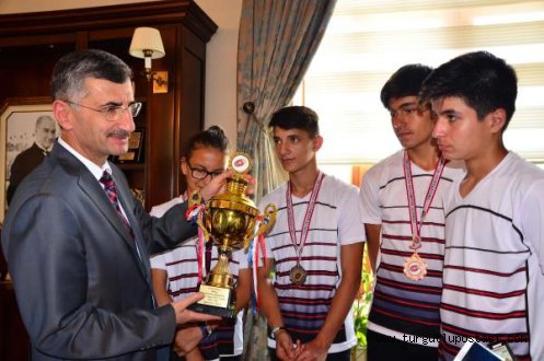 Kimsesiz şampiyonlar MANİSA Aile ve Sosyal Politikalar İl Müdürlüğü'ne bağlı Sevgi Evleri'nde kalan kimsesiz çocuklar, Badminton Türkiye Şampiyonası'nda takım halinde birinci oldu. 5 yıldır şampiyonluğu kimseye kaptırmayan kimsesiz şampiyonlar, kupayı Manisa Valisi Erdoğan Bektaş'a getirdi. Aile ve Sosyal Politikalar Bakanlığı ile Türkiye Badminton Federasyonu'nun 22-26 Mayıs tarihlerinde beşinci kez düzenlediği Badminton Türkiye Şampiyonası'nda, Manisa Aile ve Sosyal Politikalar Müdürlüğü'ne bağlı kurumlarda kalan çocuklar şampiyon oldu. Konya'da düzenlenen şampiyonaya katılan 8 çocuk, gençler kategorisinde elde ettikleri başarının sevincini Manisa Valisi Erdoğan Bektaş ile paylaştı. Aile ve Sosyal Politikalar İl Müdürü Murat Konan'la birlikte Vali Bektaş'ı ziyaret eden çocuklar kazandıkları kupayı da götürdü. Manisa Aile ve Sosyal Politikalar İl Müdürü Murat Konan, 8 çocuğun elde ettiği başarının güzel bir örnek olduğunu belirterek, "Çocuklarımız azimlerini hiç kaybetmiyor. 5 yıldır üst üste şampiyon oluyoruz. Kupaları kimseye kaptırmadık. Çocuklara yol gösterildiğinde, sahip çıkıldığında başarının da beraberinde geldiğini gördük. 8 şampiyon çocuğumuzun içinden Merte Ayyürü ve Kezban Özcan da milli takıma seçildiler" dedi. Manisa Valisi Erdoğan Bektaş da, öğrencileri tebrik ederek, "Nereden nereye... Aile ve Sosyal Politikalar Bakanlığı'na bağlı kurumlarımızdaki çocuklarımız artık başa güreşiyor, önde yarışıyorlar. Şampiyon olup kupa getiriyorlar. Rakip tanımıyorlar. Onlarla gurur duyuyoruz" diye konuştu. Vali Erdoğan Bektaş, öğrencilere çeşitli ödüller verdi. dha