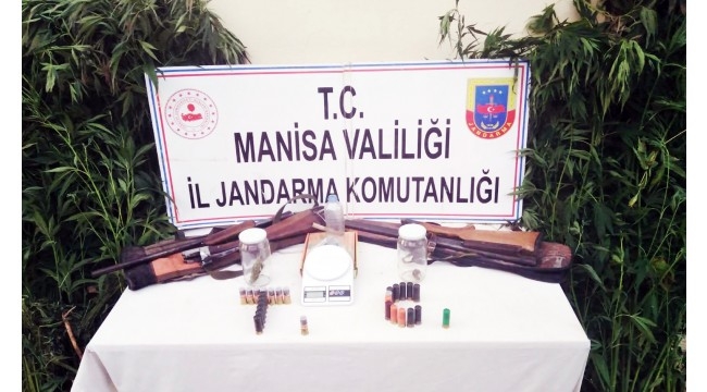 Turgutlu İlçe Jandarma Komutanlığı, Ahmetli İlçe Jandarma Komutanlığı ve 9'uncu Jasat Timi ve Kaçakçılık ve Organize Suçlarla Mücadele Şube Müdürlüğü ekiplerince, şüphelilerin evlerinde yapılan aramada 5 gr kubar esrar, esrar içiminde kullanılan aparat, 2 adet ruhsatsız av tüfeği ve 27 adet dolu fişek, 1 adet dijital hassas terazi ele geçirildi.