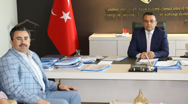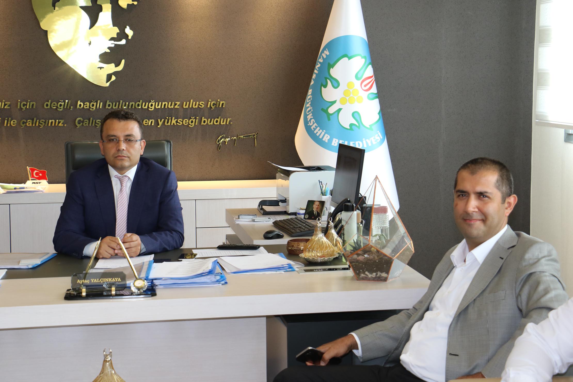 Kırkağaç’tan Büyükşehir’e ZiyaretManisa Büyükşehir Belediyesi Genel Sekreteri Aytaç Yalçınkaya, Kırkağaç Kaymakamı Cengizhan Yılmaz ve Kırkağaç Belediye Başkanı Yaşar İsmail Gedüz’ü makamında konuk etti.Kırkağaç Kaymakamı Cengizhan Yılmaz ile Kırkağaç Belediye Başkanı Yaşar İsmail Gedüz, Manisa Büyükşehir Belediyesi’ne ziyarette bulundu. Kaymakam Yılmaz ile Belediye Başkanı Gedüz, Genel Sekreter Aytaç Yalçınkaya tarafından konuk edildi. Ziyarette Manisa Büyükşehir Belediyesi Ulaşım Daire Başkanı Mümin Deniz ile Kırkağaç Koordinatörü Ali Rıza Duman da yer aldı. Ziyarette Manisa Büyükşehir Belediyesi’nin ilçede hayata geçirdiği ve gerçekleştirmeyi planladığı projeler de görüşüldü. Ziyaretten duyduğu memnuniyeti ifade eden Genel Sekreter Aytaç Yalçınkaya, Kaymakam Cengizhan Yılmaz ile Kırkağaç Belediye Başkanı Yaşar İsmail Gedüz’e ziyaretleri nedeniyle teşekkürlerini iletti. Haber Merkezi
