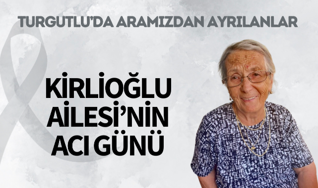 Kirlioğlu Ailesi’nin Acı GünüTURGUTLU İlçesi sakinlerinden Firdevs Kirlioğlu hakkın rahmetine kavuştu. Cenazesi yarın öğle namazına müteakip Ergenekon Mahallesi Yunusemre Camii’nde kılınacak cenaze namazının ardından toprağa verilecek.Merhumeye Allah'tan rahmet, yakınlarına başsağlığı dileriz.