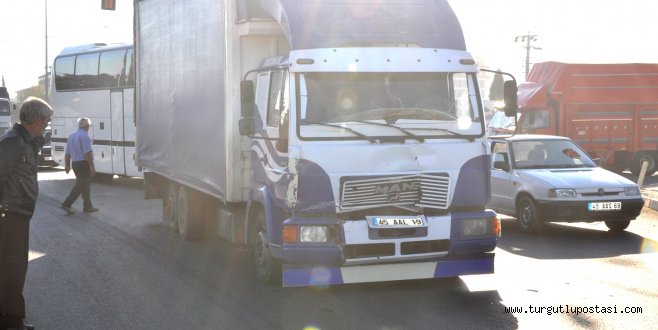 TURGUTLKU İlçesi'nde kırmızı ışıkta duran bir kamyonete,
