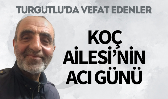 Koç Ailesi’nin Acı GünüTURGUTLU İlçesi sakinlerinden Vanlı fırıncı Mehmet Koç (66) hakkın rahmetine kavuştu.Cenazesi bugün öğle namazına müteakip Kervancı Camii’nde kılınacak cenaze namazının ardından yeni kabristanda toprağa verilecek.Yakınları: oğulları Ümit Koç, Deniz Koç, Bayram Koç, Ceyhun Or, Cengiz Or, kızı Melike KoçMerhuma Allah'tan rahmet, yakınlarına başsağlığı dileriz.