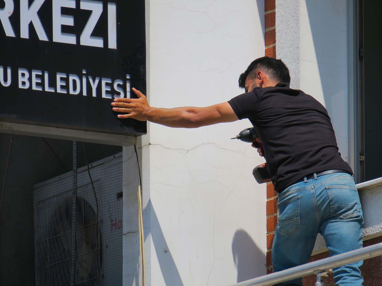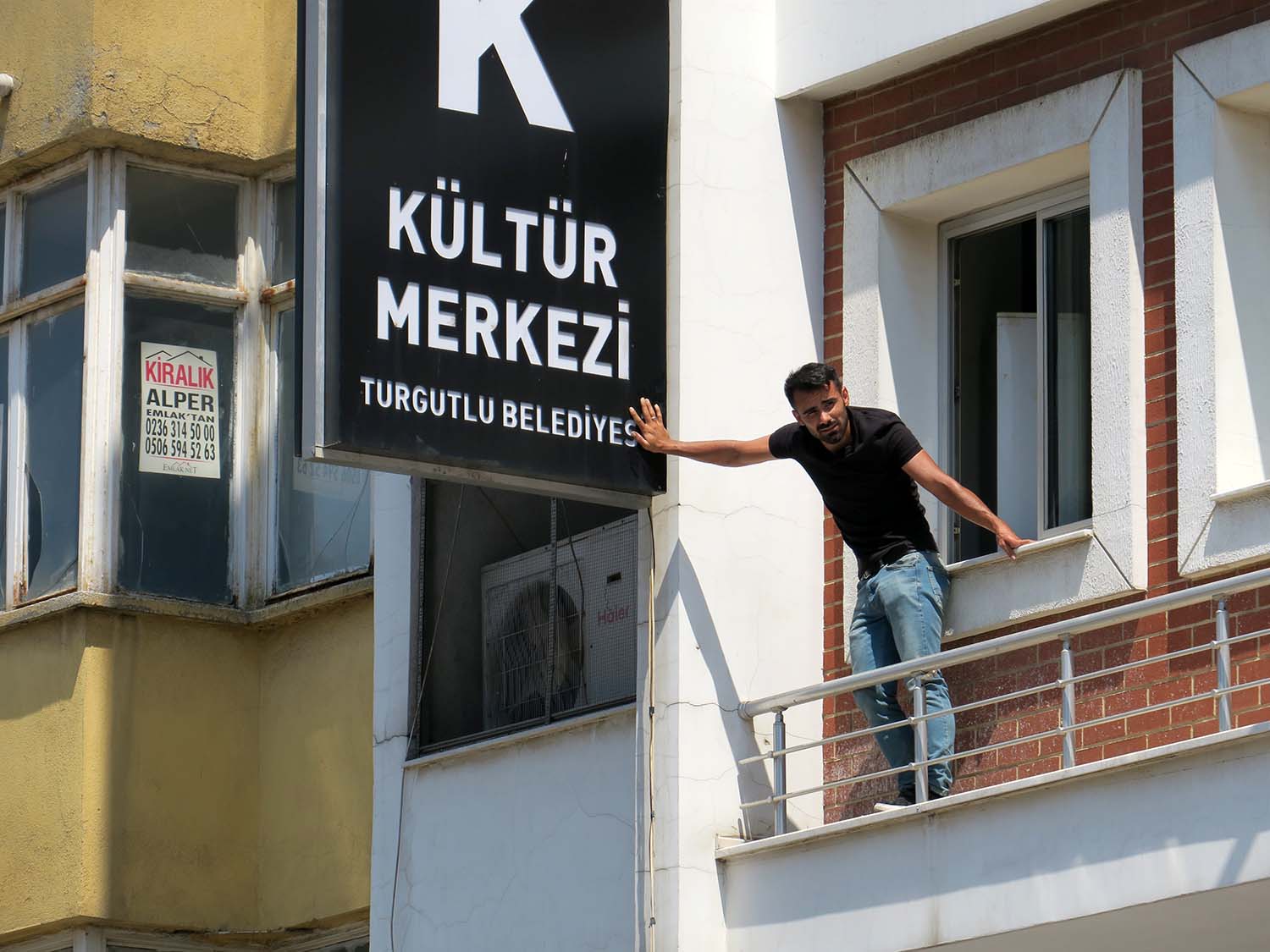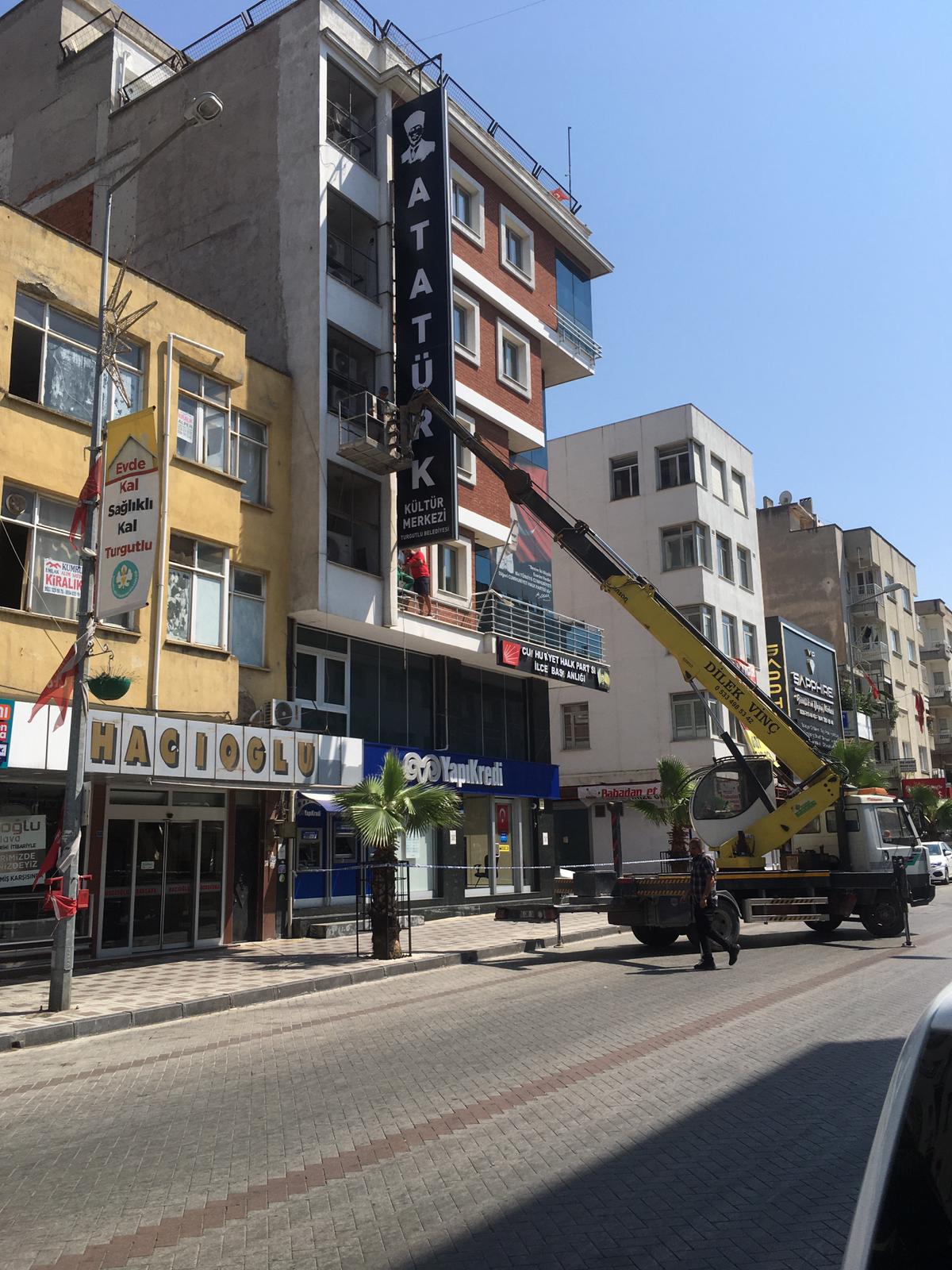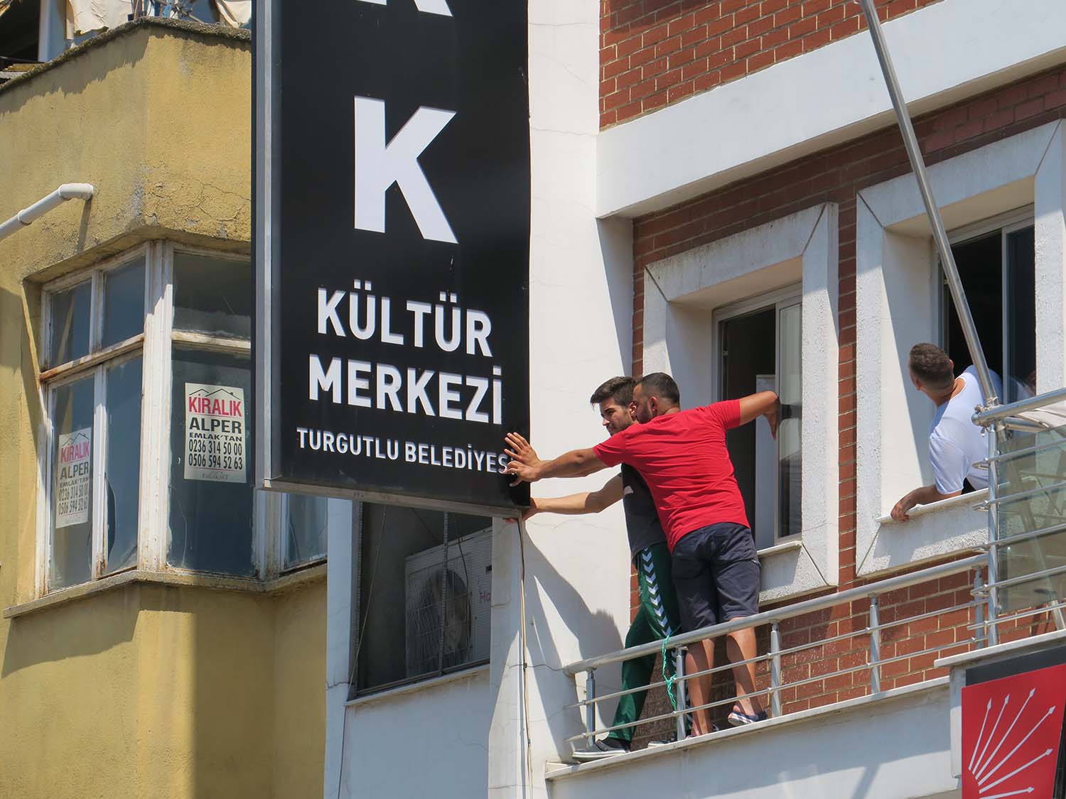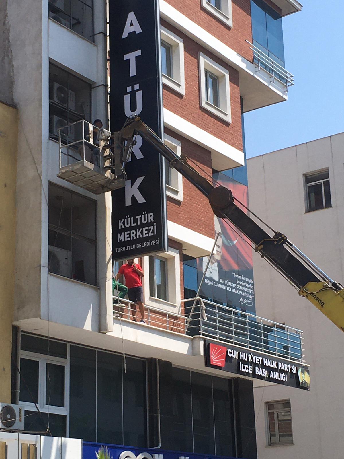 Rüzgar etkili oluyorTurgutlu'da saat 14.00 sıralarında çıkan şiddetli rüzgar, vatandaşlara güç anlar yaşatmaya başladı. Bazı tabelalar devrilirken; reklam panoları da kırıldı. Atatürk Bulvarı üzerindeki 4 katlı Turgutlu Belediyesi Atatürk Kültür Merkezi Nin 15 metre uzunluğunda 75 santim enindeki tabelanın duvar montaj vidaları yerinden çıkarken olay yerine gelen emniyet güçleri ve zabıta ekipleri önlem olarak caddeyi trafiğe kapattı. Olay yerine çağrılan vinç yardımıyla tabelanın duvara montajı yapılıyor. Zemin üstündeki bir kişinin tabelayı elleriyle sabit tutmaya çalışması ilginç görüntüye sahne oldu. Turgutlu’daki ekin arazilerinde çıkan anız yangınları rüzgarın etkisiyle büyürken itfaiye ve orman ekipleri yoğun çapa harcıyorDoğan ÇİZMECİ