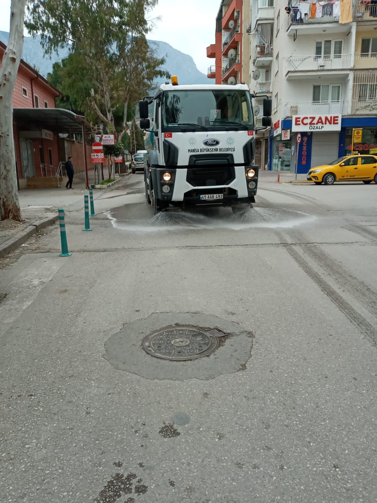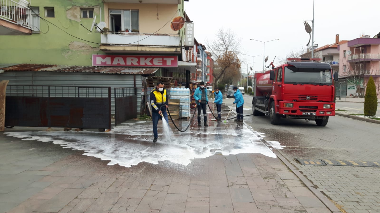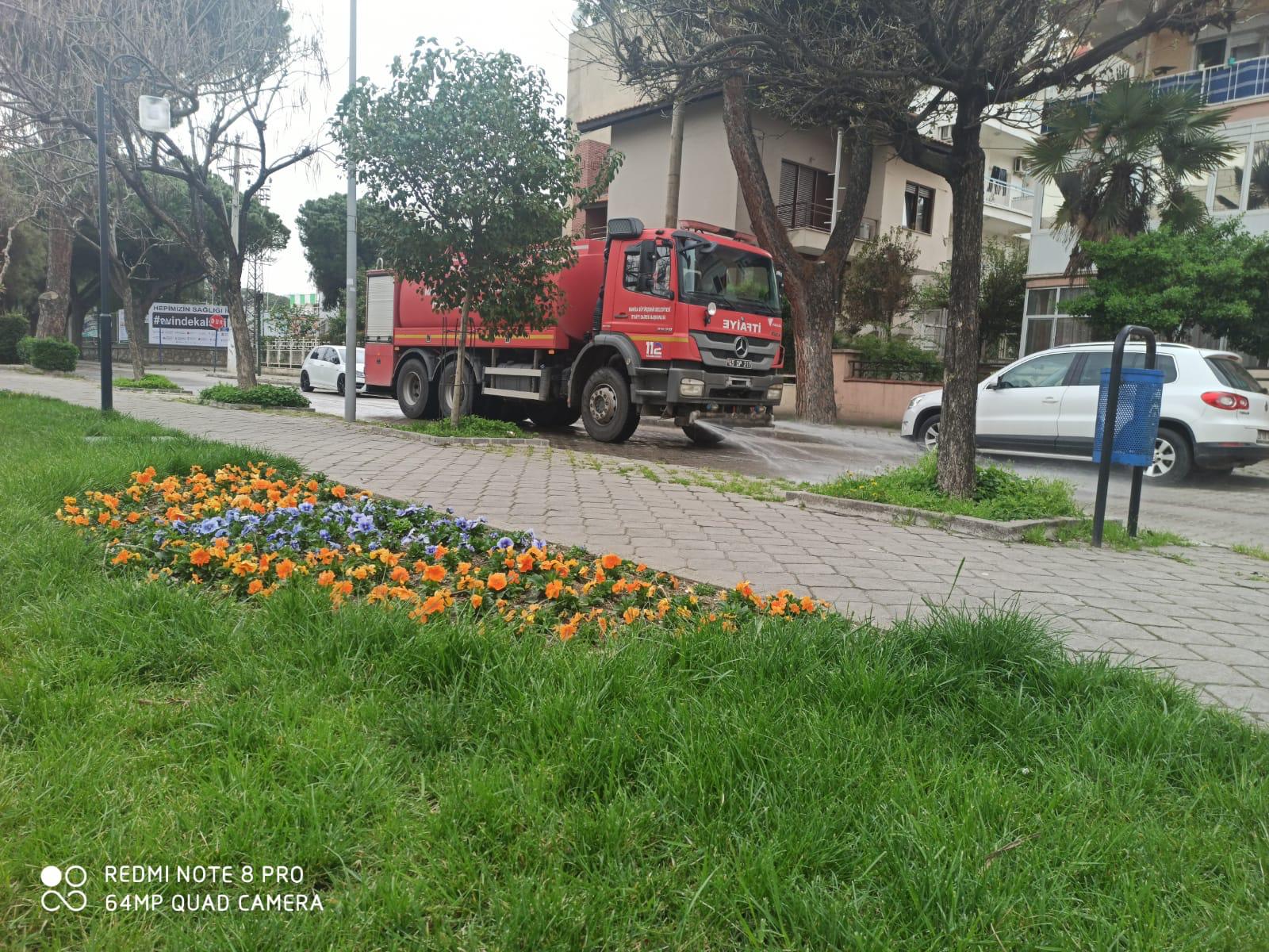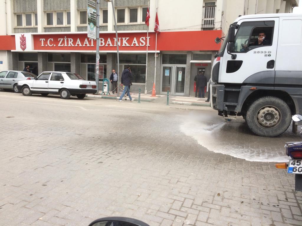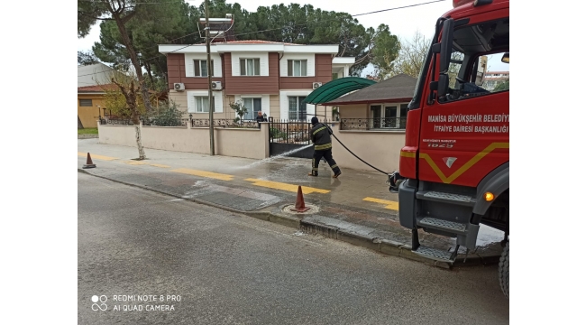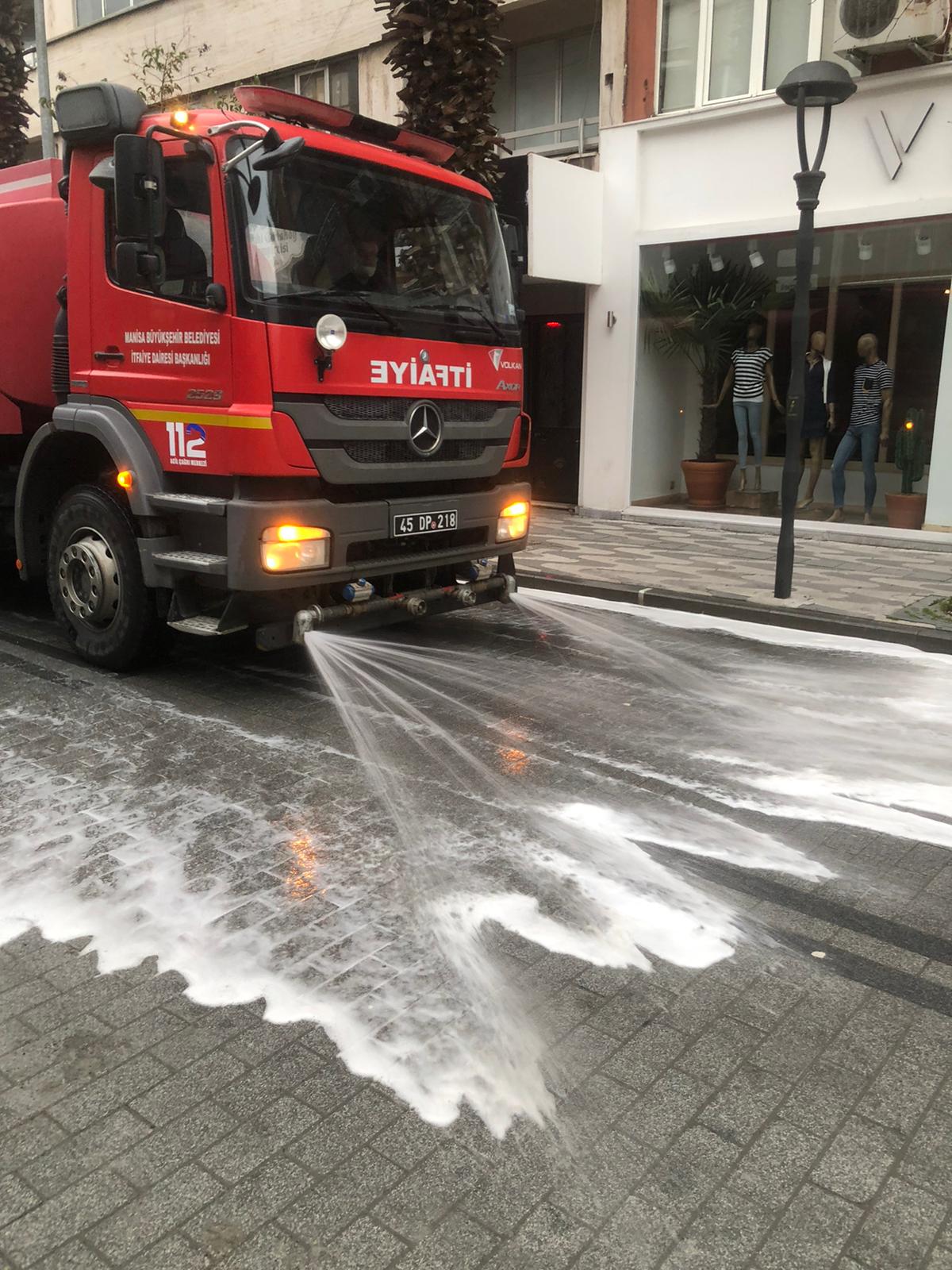 Manisa Büyükşehir Belediyesi, koronavirüsle (Covid-19) mücadele çalışmaları kapsamında, il genelinde cadde ve sokaklarda dezenfeksiyonlu su ile yıkama ve temizlik çalışmalarını aralıksız sürdürüyor.