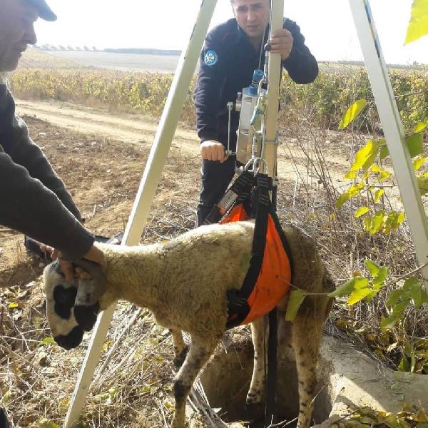 Koyunu 8 metrelik kuyudan itfaiye ekibi kurtardı