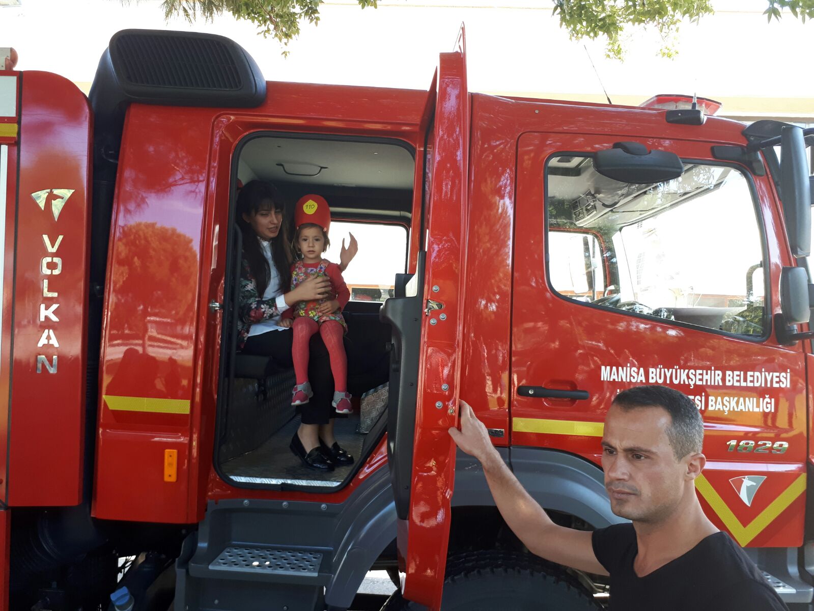 Bir günlük itfaiyeciler Manisa Büyükşehir Belediyesi Salihli Çocuk Kültür Sanat Merkezi’nin küçük öğrencileri, itfaiye ziyaretinde hem eğlendi hem bilgilendi. Yeni bir meslekle tanışan minikler, itfaiyenin araç ve ekipmanlarını büyük bir merakla inceledi. Manisa Büyükşehir Belediyesi Çocuk Kültür Sanat Merkezleri düzenlenen etkinliklerle çocukların yalnızca eğitimine değil kişisel gelişimine de katkı sağlıyor. Salihli’de çocuk kültür sanat merkezinin öğrencileri, ilçedeki itfaiye birimini ziyaret etti. Kartondan yapılmış itfaiye şapkaları takan küçük öğrenciler, öğretmenleri ve velileri ile birlikte itfaiye araç ve ekipmanlarını inceledi. İtfaiye çalışanlarından merak ettikleri konuları da öğrenen minikler, bir günlüğüne de olsa mesleğin keyifli ve zor yanlarını gözlemleyerek öğrenmiş oldu. Öğrenciler geziden mutlu ayrılırken aileler de çocuklarına sağlanan bu imkanlar için Manisa Büyükşehir Belediyesi’ne teşekkür etti.HABER MERKEZİ