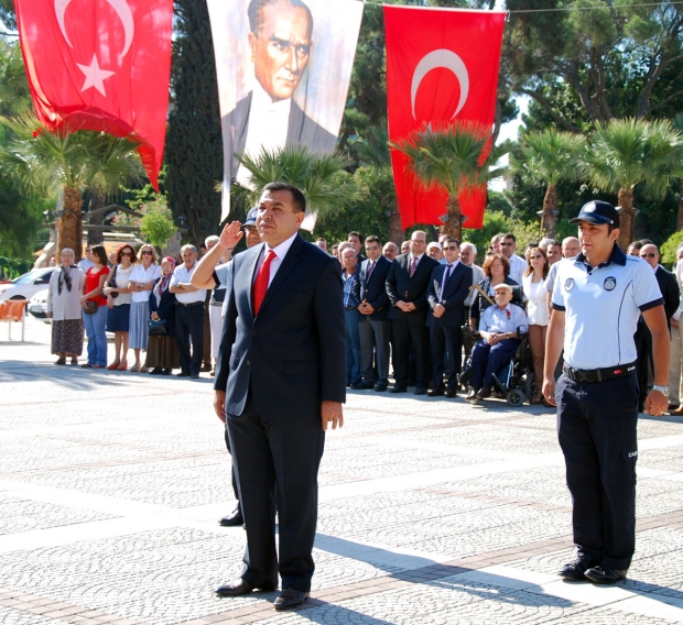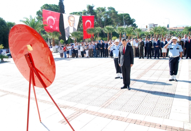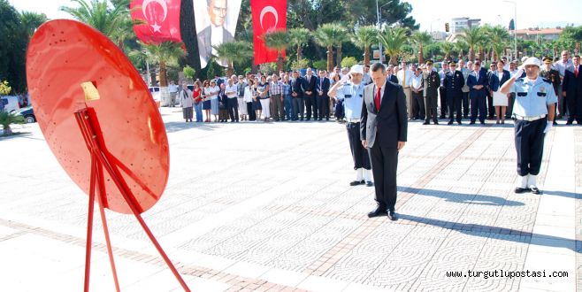 50. Yıl Alanı’ndaki Atatürk Anıtı’na çelenk konulmasıyla başlayan tören saygı duruşu ve istiklal marşıyla devam etti. Günün anlam ve önemi belirten konuşmayı yapan Turgutlu Belediye Başkanı Serhat Orhan: “Turgutlu’muz, 29 Mayıs 1919’dan 7 Eylül 1922 tarihine kadar yaklaşık 28 ay düşman işgali altında bulunmuş, bu süreç içerisinde düşmanın zalimlikleri ile karşı karşıya kalmış ve çok sıkıntılı günler yaşamıştır. Yüzlerce insan katledilmiş, onlarca ev yakılmıştır. Düşman orduları, Türk ordusunun önünde İzmir’e doğru kaçarken yenilginin verdiği öfke ve acizlikle Turgutlu’yu yakmışlar, ve şehrimizin büyük bir bölümünü yok etmişlerdir. 91 yıl sonra bugün Turgutlu 120 bini aşmış nüfusu, tarımı, sanayisi, okulları, fabrikaları, hastaneleri, yolları, üniversitesi ve hizmet binaları ile yepyeni bir şehir haline gelmeyi başarmış, Ege’nin yükselen yıldızı haline gelmiştir. Bu irade Türk Milleti’nin yükselen iradesidir. Bizim bugünlere gelmemizi sağlayan, gözünü kırpmadan bu vatan için canını veren aziz şehitlerimizi ve Gazi Mustafa Kemal Atatürk’ü saygıyla anıyoruz. Hepsinin ruhu şad olsun.” dedi.
