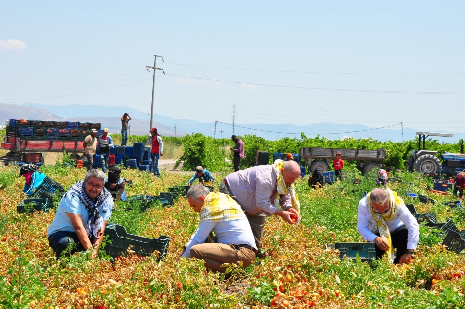 İklim koşulları ve domates hastalığından dolayı zarar gören çiftçinin kilosunu 16 liradan aşağıya satması halinde zarar edeceğini kaydeden Saruhanlı Ziraat Odası Başkanı Aydoğan Okur, "İlçemizde şu an da 12 bin dekar alanda domates ekimi yapılmakta. Bunun 8 bin dekar alanında kurutmalık olarak yapılmaktadır. Diğer kalan kısmı da salçalığa gönderilmektedir. Ülke ekonomisine büyük bir katkısı olan bir ürün. Çünkü kurutmalık domates direk ihraç ediliyor. Geçen yıl 13 liradan sattığımız domatesi, bu yıl 16 lira bir fiyat bekletişi içerisindeyiz. Çünkü girdi maliyetleri çok arttı. Buna ek olarak bu yıl yaşanan doğa olaylarından ve domatesteki hastalıktan dolayı rekoltede büyük bir kayıp var. Çiftçimizin yüzünün gülebilmesi için en az bu rakamların 16 liradan aşağıya olmaması lazım" diye konuştu.
