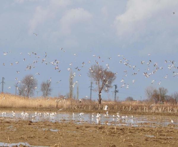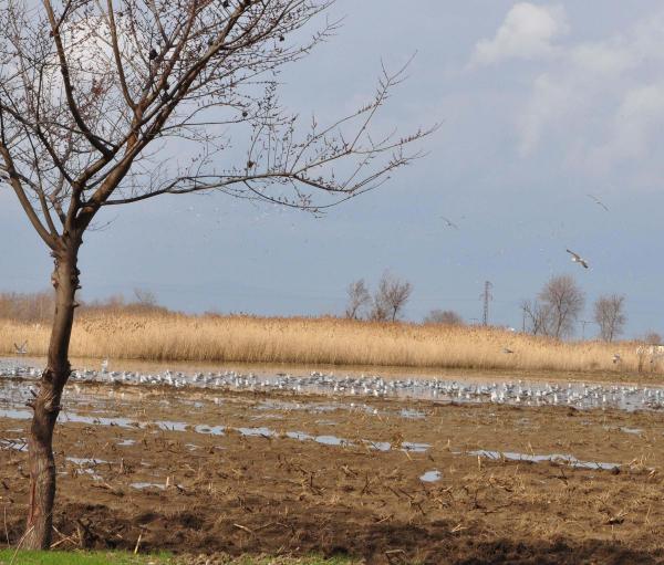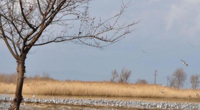 MANİSA'da belirli aralıklarla etkisini gösteren yağmur, birçok üzüm bağı ve tarım arazisinin sular altında kalmasına sebep olurken, göle dönen tarım alanları çeşitli kuşların barınma yeri haline geldi. Manisa'da belirli aralıklarla yağan yağmur, Şehzadeler İlçesi'nde birçok üzüm bağı ve tarım arazilerini sular altında bıraktı. Şehzadeler - Turgutlu Yolu Hamalın Kırı Mevkii'nde göle dönen tarım arazileri, adeta kuş cenneti haline geldi. Tarım arazilerinin çehresini değiştiren binlerce kuş, görsel şölen oluşturdu. Ayrıca arazilerde tabloları aratmayan görüntüler ortaya çıktı. DHA