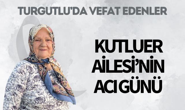 Kutluer Ailesi’nin Acı GünüTURGUTLU İlçesi Subaşı Mahalle sakinlerinden merhum pazarcı Ahmet Kutluer’in eşi Saime Kutluer hakkın rahmetine kavuştu. Cenazesi bugün öğle namazına müteakip Subaşı Camii’nde kılınacak cenaze namazının ardından eski mezarlıkta toprağa verilecek.Yakınları: oğlu Erkan Kutluer, damadı Mehmet Demirel, kızları Nazmiye Demirel, Nazire Kutluer, torunları Ahmetcan Kutluer, Ayten Çokçalışkan Halil Çokçalışkan, Ayça DemirelMerhumeye Allah'tan rahmet, yakınlarına başsağlığı dileriz.
