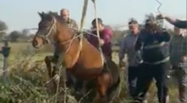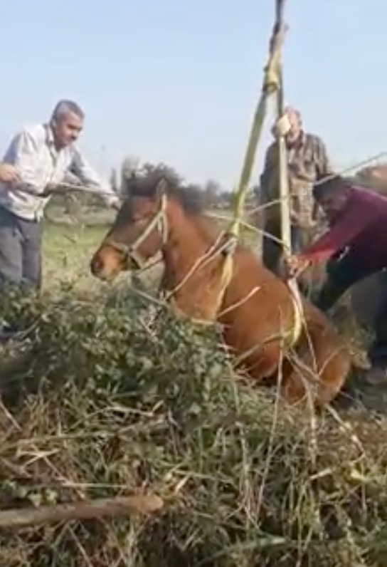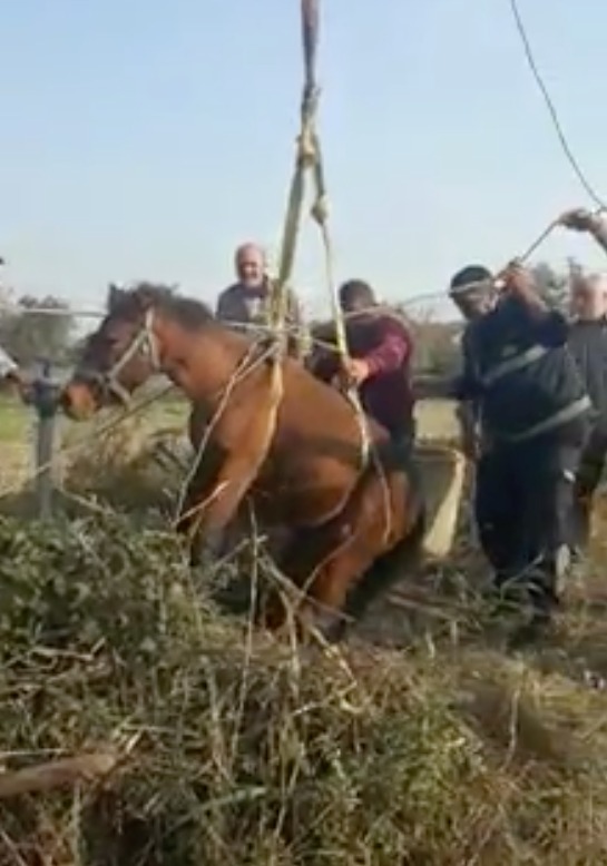 Olay, pazar günü saat 14.00 sıralarında Turgutlu Ovası Hışırlık Mevkii’nde meydana geldi. Ova yolundan geçen vatandaşlar, Recep Altın’a (56) ait arazide bulunan yaklaşık 6 metre derinliğindeki su kuyusuna düşen atın sesini duydu. Vatandaşlar, içinde su olmayan kuyudan atı kendi çabaları ile kurtaramayınca durumu Manisa Büyükşehir Belediyesi Turgutlu İtfaiye Amirliği ekiplerine bildirdi. Mahsur kalan at, MASKİ’ye ait iş makinesi yardımıyla kuyudan çıkarıldı. Ardından sahibine teslim edildi. At sahibi Kenan Şen, atının kurtarılmasında büyük gayret gösteren itfaiye ekiplerine ve vatandaşlara teşekkür etti.ERKAN ŞİMŞEK