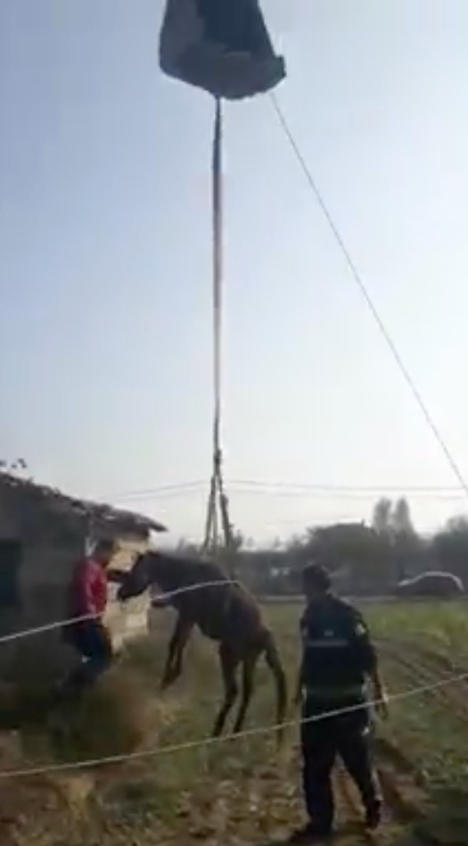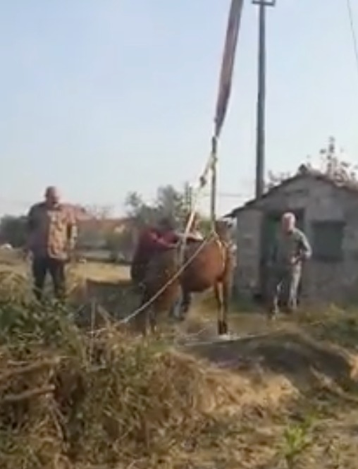 Kuyuya düşen atı itfaiye kurtardı