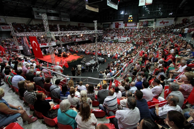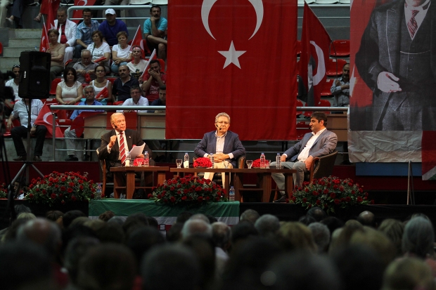Arena’da Zülfü Livaneli CoşkusuUsta gazeteci Uğur Dündar’ın hazırlayıp sunduğu Halk Arenası’na konuk olan sevilen sanatçı Zülfü Livaneli, Karşıyakalıların büyük ilgisi ile karşılaştı. Türkiye’nin siyasi gündemini yorumlayan Livaneli, salonu dolduran binlerce Karşıyakalıyı kıramayarak ‘Leylim Ley’ şarkısını da söyledi. Belediye Başkanı Hüseyin Mutlu Akpınar da Livaneli’ye eşlik etti.SALON DOLDU TAŞTIMavişehir Kapalı Spor Salonu’nda, Gazeteci Uğur Dündar’ın sunumuyla gerçekleştirilen programın konuğu ünlü sanatçı Zülfü Livaneli ve CHP Milletvekili Aykut Erdoğdu oldu. Karşıyaka Belediyesi ve Karşıyaka Platformu’nun ortaklaşa düzenlediği ve ülke gündeminin tartışıldığı program Karşıyakalılar tarafından büyük ilgiyle karşılandı. 5 bin kişilik tribün alanının yanı sıra, üç bin kişilik saha kısmı da tamamen doldu. Ellerinde Türk bayrakları ile marşlar söyleyen Karşıyakalılar, en çok ilgiyi Zülfü Livaneli’ye gösterdi.LİVANELİ BÜYÜLEDİSözleri sık sık alkışlarla kesilen Livaneli, salonda bulunan binlerce Karşıyakalı’nın ‘Leylim Ley’ ısrarını da geri çevirmedi. Sevilen şarkıyı salondakilerle birlikte seslendiren Livaneli’ye, Karşıyaka Belediye Başkanı Hüseyin Mutlu Akpınar da eşlik etti. Livaneli; Başkan Akpınar’ın, geçtiğimiz aylarda vefat eden babası Kenan Akpınar’ın, Ereğli Belediye Başkanlığı döneminde, belediye hoparlöründen ‘Leylim Ley’ şarkısını dinlettiği için 2 yıl hapis cezası aldığını da hatırlatarak “Bu şarkıyı rahmetli Akpınar’ın hatırasına söylüyorum” dedi. Başkan Hüseyin Mutlu Akpınar ise “Cumhuriyet değerlerine sahip çıkan, Ulu Önder Atatürk’ün annesi Zübeyde Hanım’ı sinesinde barındıran Karşıyaka’ya hoşgeldiniz” ifadelerini kullandı.HABER MERKEZİ