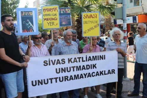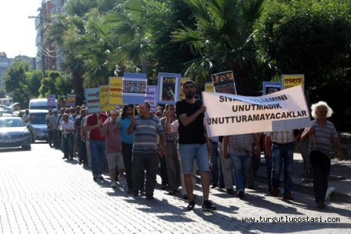 Akhisar'da Madımak olayları anıldıMANİSA'nın Akhisar İlçesi'nde, Madımak olaylarının 23'üncü yıldönümü için düzenlenen etkinlikte, ölenler anıldı. Akhisar Demokrasi Platformu üyesi bir grup, Madımak olaylarının 23'üncü yıldönümü nedeniyle öğretmen evi önünde basın açıklaması yaptı. Platform adına konuşan Veli Doğan, "Sivas Katliamı'nı yapanlarla bugünkü AKP iktidarının zihniyeti aynıdır. Bizler, sanıkları savunan avukatların bugün AKP milletvekili olduklarını, hatta şu anki Anayasa Mahkemesi'nin bir üyesinin AKP iktidarı tarafından atanan o dönemin avukatı olduğunu unutmadık. Sivas Katliamı davası zaman aşımına uğradığında şimdiki Cumhurbaşkanı'nın 'Vatana ve millete hayırlı olsun' dediğini de biliyoruz. Adalet Bakanı Bekir Bozdağ'ın bizim tarihimizde insan yakmak yoktur dediğinde sanırım Sivas Katliamı'nı unutmuş gibidir. 2 Temmuz ve bugünlerde yaşadığımız katliamlar insanlığa karşı işlenmiş suçlardır. Son bir yıldır yaşanan onlarca katliamda yüzlerce insanımız yaşamını kaybetmiştir. Siyasi iktidar bu katliamlara alışacaksınız diyorlar. Bu katliamlara alışmayacağız ülkemizi katliamlar ülkesi olmaktan çıkarmak için mücadeleden başka bir yolumuz yoktur" dedi.Bir süre slogan atan grup, sessizce dağıldı.