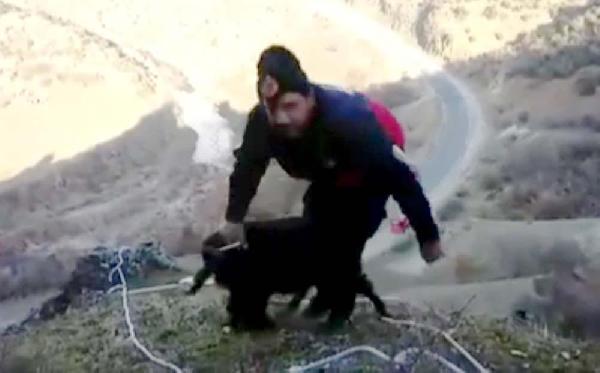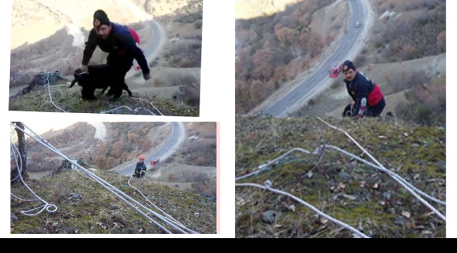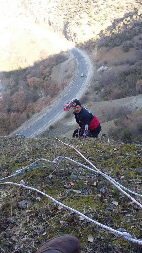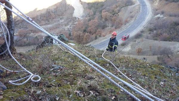 Dağlık alanda kayıklarda mahsur kalan keçi, itfaiye ekiplerinin operasyonuyla kurtarıldı.