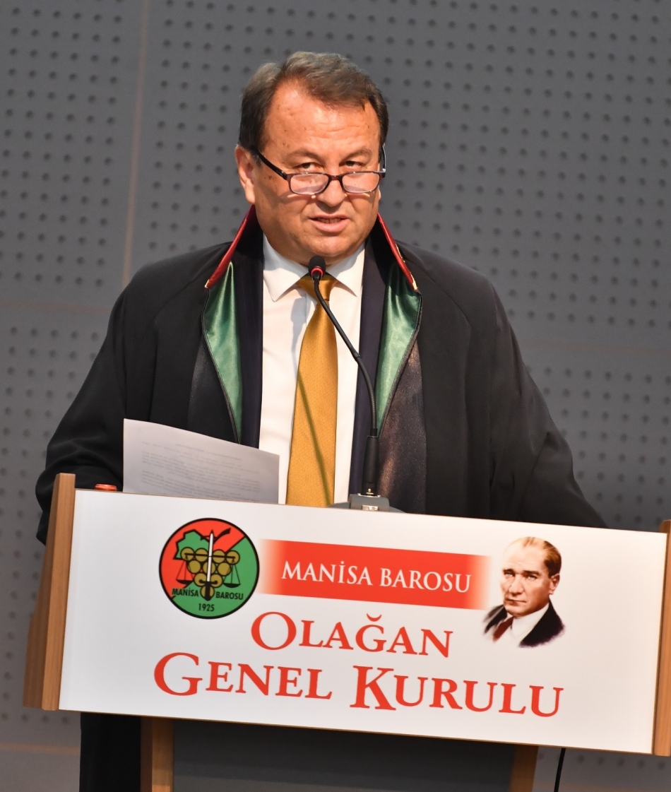 6 yıllık görev süresinin dolduğunu ve bir daha aday olmayacağını aylar öncesinden açıkladığını dile getiren Manisa Barosu Başkanı Av. Ali Arslan, “Manisa Barosu 96 yaşındadır. 96 yıldır hukuka, hak arayışına, vatanımızın birlik ve bütünlüğüne, demokrasimize katkılarımız devam etmektedir. Manisa Barosu, insanlığa karşı suç olan bütün terör eylemlerini, darbe teşebbüslerini, hukuk dışı tüm eylem ve yapılanmaları reddeder. Manisa Barosu Cumhuriyetin temel ilkelerine bağlı, demokratik hukuk devletinin bütün kurum ve kurullarıyla çalışmasını hedef edinen, Atatürk İlke ve Devrimlerini rehber edinen bir barodur. Bu duruşumuzu her zaman, her yerde söyledik, bir kez daha genel kurul salonunda söylüyoruz. Yaptığımız tüm bu çalışmalar, görevler; hakça bölüşümün gerçekleştiği, güçlünün zayıfı ezmediği, hukukun üstünlüğünün kabul edildiği, demokrasinin tüm kurum ve kurulları ile çalıştığı, özgürce düşüncelerimizi ifade edebildiğimiz bir ülkede yaşamak için. Bu hedeflerimizi gerçekleştirmek için çalışmaya devam edeceğiz” dedi. Ülkede anayasanın ve yasaların uygulanamaz olduğunu ifade eden Arslan, “Bir hukukçu, bir avukat olarak söylemekten üzüntü duyuyorum ama söylemek zorundayım/zorundayız. Ülkemizde normlar hiyerarşisi kalkmış, Anayasa ve yasalar uygulanmaz olmuştur. Genelgeler ile ülke yönetilmeye başlanmıştır. Yargıda buna göz yummuştur. Yasalar ile düzenlenmesi gereken birçok konuda genelgelerle işlem yapılmıştır. Bu gün gerçekleştirdiğimiz 2018/2020 Olağan genel kurulunu 2020 Ekim ayında yapmamız gerekiyordu. Pandemi nedeni ile 2020 ekim ayında genel kurullar iptal edilmiş ve bu süreç bu güne kadar uzatılmıştır. Fakat arada siyasi parti genel kurulları, kadın kolları, gençlik kolları toplantıları, sendika genel kurulları yapılmış fakat Baro seçimleri yapılamamıştır. Toplumun en değerli kurumlarından Barolar yıpratılmaya, halkın nazarında değersizleştirilmeye çalışılmaktadır. Takdiri genel kurula bırakıyorum” diye konuştu.