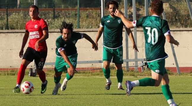 Manisa BBSK 0-1 ÜmraniyesporManisa Büyükşehir Belediyespor, Afyon kampında ilk hazırlık maçını TFF 1. Lig ekiplerinden Ümraniyespor ile oynadı. Güçlü rakibi karşısında ilk hazırlık maçı olmasına rağmen etkili bir oyun sergileyen yeşil-beyazlılar, sahadan 1-0 yenilgiyle ayrılsa da önümüzdeki günler için umut verdi.Yeni sezon hazırlıklarını Afyonda sürdüren Spor Toto 3. Ligdeki temsilcimiz Manisa Büyükşehir Belediyespor, kamptaki ilk maçını Ümraniyespor ile oynadı. Karşılaşmayı Manisa Büyükşehir Belediye Başkanı Cengiz Ergün, Kulüp Başkanı Mevlüt Aktan ile birlikte yönetim kurulu üyeleri Özcan Nalbantlar, Gökmen Aytaç ve Bora Çaylan'da izledi. Ümraniyespor karşılaşmanın 10. dakikasında öne geçti. Mücahit'in sağ kanattan ortasında Tarık kafa vuruşuyla topu Büyükşehir ağlarına gönderdi. Manisa Büyükşehir Belediyespor ilk yarıda rakibiyle başa baş mücadele etse de Ümraniyespor ilk yarıyı 1-0 önde kapattı. İkinci yarıda her iki takımda farklı kadrolarla mücadele etti. İkinci yarıda Ümraniyespor pozisyon üretmekte zorlanırken, Manisa Büyükşehir Belediyespor ise ilk yarıya oranla ikinci yarıda topla daha fazla oynayan taraf oldu. Her iki takımda ikinci yarıda yakaladığı fırsatları gole çeviremezken, Ümraniyespor ilk yarıda bulduğu golle sahadan 1-0 galibiyetle ayrıldı. Manisa Büyükşehir Belediyespor ilk hazırlık maçı olmasına rağmen güçlü rakibi karşısında ortaya koyduğu oyunla beğeni topladı. haber merkeziStat: Afyonkarahisar Spor TesisleriHakemler: Şehmuz Öztürk, Olcay Koç, Sadık ÖzManisa BBSK: Umutcan, Harun, Ufukhan, Mehmet, Erhan, Cihan, Kürşat, Umut, Engin, Berkin, AliÜmraniyespor: Cem, Tarık, Mustafa, Kerem, Mücahit, Bulut, Timur, Bahadır, Samed, Emircan, SerdarGol: Dk. 10 Tarık (Ümraniyespor)