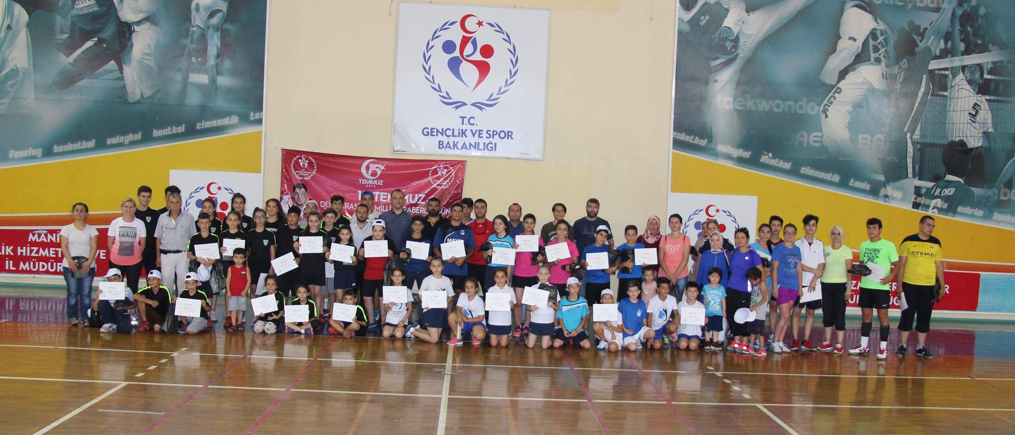 MANİSA'DA 15 TEMMUZ ŞEHİTLERİ ANISINA BADMİNTON TURNUVASI YAPILDIManisa Gençlik Hizmetleri ve Spor İl Müdürlüğü ile Badminton Federasyonu İl Temsilciliği tarafından15 Temmuz Şehitlerini Anma, Demokrasi ve Milli Birlik Günü etkinlikleri kapsamında badminton turnuvası düzenlendi. Gençlik ve Spor Bakanlığı Spor Genel Müdürlüğü tarafından “15 Temmuz Haftası Anma Programı Spor Etkinlikleri” kapsamında Çok Amaçlı Spor Salonu'nda 50 sporcunu katılımıyla badminton müsabakaları düzenlendi. Hayli çekişmeli geçen müsabakalar sonunda; dereceye giren sporculara katılım belgelerini Manisa Gençlik Hizmetleri ve Spor İl Müdür Vekili Hayrettin Hayri Tokmakçı, Spor Şube Müdürü Bilal Yurt, İşletmeler Şube Müdür Vekili Erhan Özel ve antrenörler tarafından verildi. Ayrıca Diyanet Gençlik ve Spor Kulüp Başkanı Murat Emgener müsabakalara katılan sporculara Kur’an-ı Kerim dağıttı. Törende konuşan Manisa Gençlik Hizmetleri ve Spor İl Müdür Vekili Hayrettin Hayri Tokmakçı, 15 Temmuz Şehitlerini Anma, Demokrasi ve Milli Birlik Günü programları kapsamında Manisa Gençlik Hizmetleri ve Spor İl Müdürlüğü olarak birçok etkinlikle 15 Temmuz'u unutturmamak ve gençlerimize milli birlik ruhunu oluşturmak amacıyla yapmaktayız, demokrasimize ve milli iradeye gençlerimizle sahip çıkacağız. Bu vesile ile 15 Temmuz darbe girişimine karşı canlarını veren şehitlerimize bir kez daha Allah’tan rahmet diliyor, gazilerimizi şükran ve minnetle anıyorum.'' dedi. Haber Merkezi