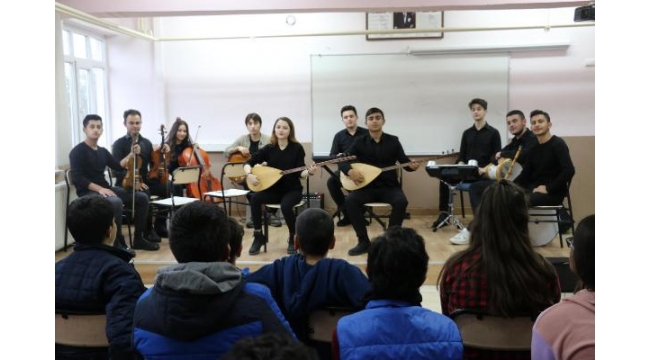 MİLLİ Eğitim Bakanı Ziya Selçuk'un okullarda bağlama dersi verileceği yönündeki açıklaması sonrası, Manisa'da 'Müzik Yolcuları' adlı proje hazırlandı. Projeyle oluşturulan 15 kişilik ekip, kentteki okulları gezip kulak ve ses taraması yaparak, yetenekli öğrencileri bulmak için çalışmalarına başladı.Yunusemre İlçe Milli Eğitim Müdürlüğü, Milli Eğitim Bakanı Ziya Selçuk'un okullarda bağlama dersi yapılacağını açıklamasının ardından harekete geçti. 'Müzik Yolcuları' adlı projeyi hazırlayan Müdürlük, 'Müzik için yola çık, müzik için yol açık' sloganıyla bağlamaya yetenekli öğrencileri aramaya başladı. Manisa Güzel Sanatlar Lisesi öğretmenleri ve öğrencilerinin yer aldığı 15 kişilik ekip, İlçe Milli Eğitim Müdürlüğü tarafından tahsis edilen araçla okulları gezerek, kulak ve ses taraması yapıyor. İlk olarak, Yağcılar Nebahat Ölmez Ortaokulu'ndaki yetenekler kontrol edildi. Belirlenecek öğrencilere, haftanın bir günü 2 saat özel ders vereceği belirtildi. Yağcılar Nebahat Ölmez Ortaokulu'nda belirlenen 10 çocuk eğitime başladı. Manisa Güzel Sanatlar Lisesi'ne ait bağlamalarla eğitime başlayan öğrencilerin, ilerleyen günlerde 200 liralık müzik aletini kendi imkanlarıyla temin edeceği öğrenildi.Çocuklara müzik kültürünü aşılayabilmek ve müziği sevdirmek için projeyi başlattıklarını ifade eden İlçe Milli Eğitim Müdürü Recep Şengül, "Önce müzik taraması yapılacak. Daha sonra yetenekli çocuklarımızı, kulağı müziğe açık çocuklarımızı tespit ederek onlar üzerinde, onların gelişmesi için çalışmalarını sürdürecekler. Bu projeyle 30 köy okulumuza ulaşmayı hedefliyoruz. Merkez okullarımızda da yapacağız, merkeze taşımayla gelen öğrencilerimiz var onlar üzerinde de yoğunlaşacağız. Bugüne kadar hiçbir müzik aletiyle tanışmamış öğrencilerimiz bu vesileyle müzik aletiyle de tanışmış olacaklar" dedi.Manisa Güzel Sanatlar Lisesi Okul Müdürü Yılmaz Sertdemir ise uzun süredir böyle bir projeyi beklediklerini belirterek, "Umarız okullarımızda, öğrencilerimizin müziğe karşı aşinalığını sağlamış olacağız. Hem Türk müziğine hem bağlamaya karşı öğrencilerimizde bir duyarlılık oluşturmaya çalışacağız. Hem de belki okulumuzun öğrencileri olarak ileride aramızda olacaklar" diye konuştu.6'ncı sınıf öğrencisi İbrahim Efe Meydan ise "Müziği seviyorum. Bağlama çalmayı arzuluyorum. Şarkı söylerken mutlu oluyorum. Bana değişik bir his kazandırıyor. Özellikle bağlamayı çok sevdim" dedi. 8'inci sınıf öğrencisi Ayşegül Atsızatar da "Okulumuzda ses ve kulak taraması yaptılar. Ben de katılıp sesimi ve kulağımı denemek istedim. Bundan önce hiçbir müzik aleti çalmıyordum. Ama bundan sonra çalmak istiyorum" ifadelerini kullandı.DHA