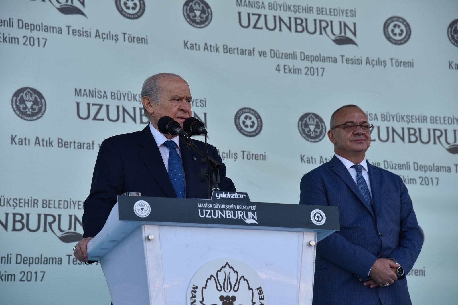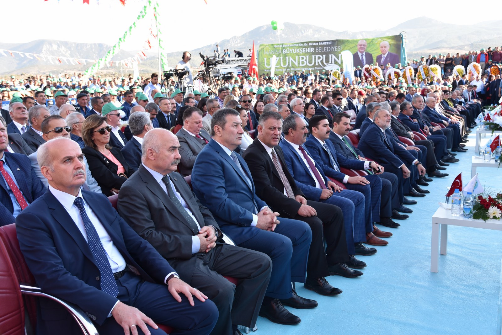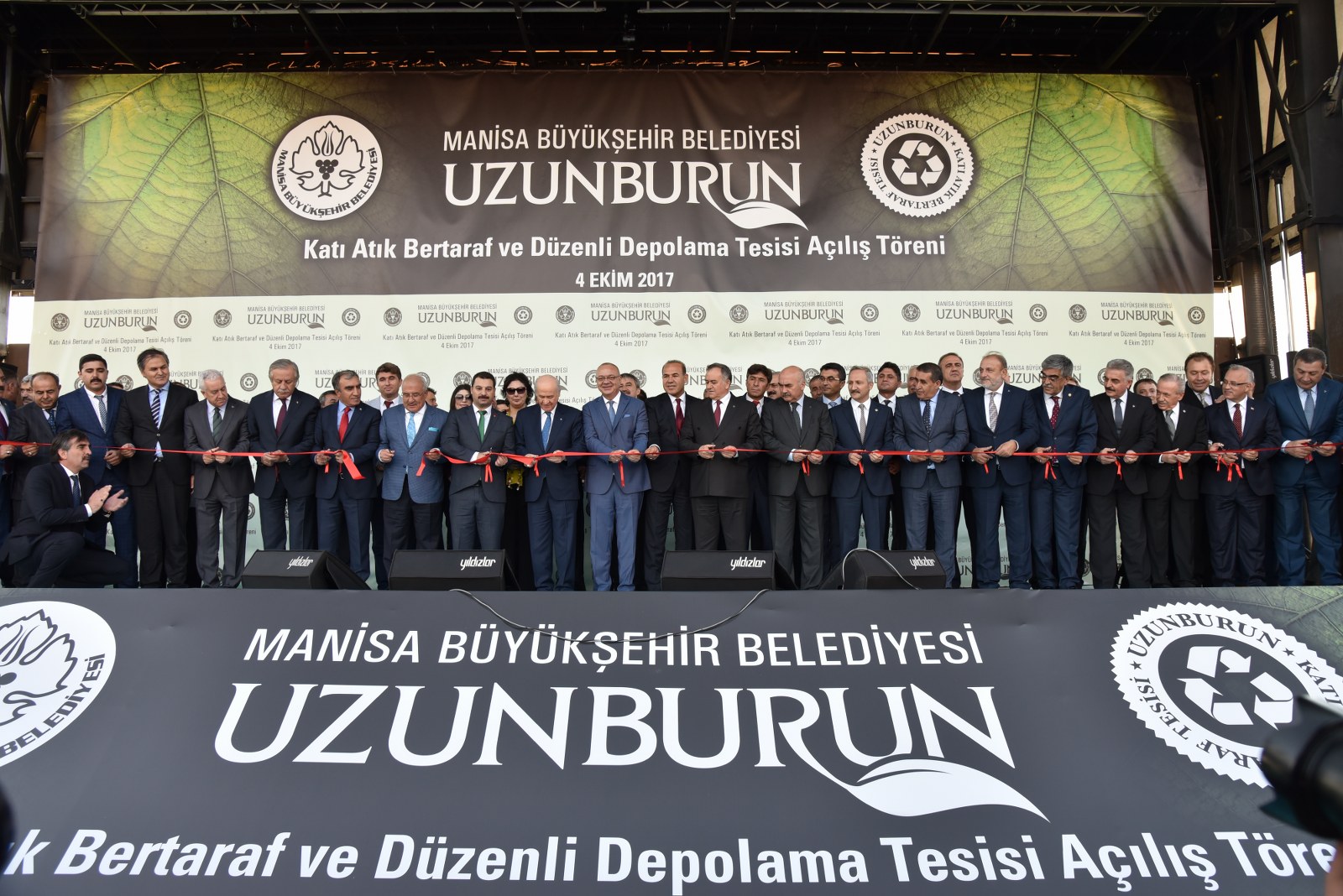 Manisa’nın Çevre Bayramı Çevreci Tesisi Devlet Bahçeli ve Cengiz Ergün Birlikte Açtı110 Milyonluk Çevreci Yatırım HizmetteManisa’nın 40 Yıllık Kabusu BittiManisa’da Çöp Tarih OlduManisa Büyükşehir Belediyesinin şehrin 40 yıllık çöp sorununu tarihe gömdüğü Uzunburun Katı Atık Bertaraf ve Düzenli Depolama Tesisi’nin açılışı, MHP Genel Başkanı Devlet Bahçeli’nin katılımlarıyla gerçekleştirildi. Günlük 650 ton çöpün işleneceği tesisin Manisa’ya hayırlı olmasını dileyen MHP Genel Başkanı Devlet Bahçeli, “Açılışını yapmaktan kıvanç duyduğumuz tesis, milletimizin bize verdiği emanete layık olduğumuzun göstergesi, güvencesidir. Projenin planlama ve yapım aşamasında özverili çalışmalarda bulunan Manisa Büyükşehir Belediye Başkanımız Sayın Cengiz Ergün Bey başta olmak üzere, tüm belediye personelimize, dava arkadaşlarımıza, emeği geçen herkese teşekkürlerimi sunuyorum. Her birini ayrı ayrı tebrik ve takdir ediyorum. Ülkemize, Manisa’mıza ve siz değerli vatandaşlarımıza hayırlı uğurlu olmasını Allah’tan niyaz ediyorum” dedi.Manisa Büyükşehir Belediye Başkanı Cengiz Ergün’ün yoğun çabasıyla 2012’de ilk adımları atılan uzun ve meşakkatli bir sürecin ardından 8 Mart 2016’da temelleri atılan Uzunburun Katı Atık Bertaraf ve Düzenli Depolama Tesisi, görkemli bir törenle hizmete açıldı. Dev tesisin açılış törenine MHP Genel Başkanı Devlet Bahçeli ve Manisa Büyükşehir Belediye Başkanı Cengiz Ergün’ün yanı sıra Genel Başkan Yardımcıları Şefkat Çetin, Celal Adan, Oktay Öztürk, Sadir Durmaz, MHP Genel Sekreteri İsmet Büyükataman, Genel Sekreter Yardımcıları Mustafa Hidayet Vahapoğlu, Mustafa Kalaycı, Başkan Ergün’ün eşi Şeyda Ergün, MHP’li milletvekilleri, ilçe kaymakamları, İl Jandarma Komutanı Tuğgeneral Erhan Can, Emniyet Müdürü Fevzi Bilgiç, Adana Büyükşehir Belediye Başkanı Hüseyin Sözlü, Mersin Büyükşehir Belediye Başkanı Turgutlu Belediye Başkanı Turgay Şirin, Salihli Belediye Başkanı Zeki Kayda, Sarıgöl Belediye Başkanı Necati Selçuk, Alaşehir Belediye Başkanı Dr. Gökhan Karaçoban, Kula Belediye Başkanı Hüseyin Tosun, Selendi Belediye Başkanı Nurullah Savaş, Manisa Büyükşehir Belediyesi Genel Sekreteri Aytaç Yalçınkaya, MASKİ Genel Müdürü Yaşar Coşkun, Ülkü Ocakları Genel Başkanı Olcay Kılavuz, MHP Kadın Kolları Genel Başkanı Nevin Taşlıçay, MCBÜ Rektörü Prof. Dr. Kemal Çelebi, Manisa Büyükşehir Belediyesi Teftiş Kurulu Başkanı Ahmet Türkgüler, Başkan Danışmanları Yasemin Aktan, Nursel Ustamehmetoğlu, Azmi Açıkdil, MASKİ Genel Müdür Yardımcıları, Genel Sekreter Yardımcıları, İller Bankası Bölge Müdürü Enver Çelebi, ilçe belediye başkanları, MHP İl Başkanı Erkan Öztürk, misafir il başkanları, Manisa ve ilçeleri Ülkü Ocakları başkanları, Nazilli, Çal, Aliağa, Isparta, Tarsus, Şalpazarı, Yalvaç, Menemen belediye başkanları, Büyükşehir Belediye Meclisi MHP Grup Başkanvekili Mehmet Güzgülü, Büyükşehir ve ilçe belediye meclis üyeleri, Büyükşehir ve MASKİ daire başkanları, sivil toplum kuruluşlarının temsilcileri, ulusal, bölgesel ve yerel gazetelerin temsilcileri, mahalle muhtarları ve çok sayıda vatandaş katıldı.Manisa İçin Tarihi GünSaygı duruşu ve İstiklal Marşı’nın okunmasıyla başlayan törende, tesisin tanıtımının yer aldığı film gösterisi gerçekleştirildi. Ardından törenin açılış konuşmasını yapmak üzere Manisa Büyükşehir Belediye Başkanı Cengiz Ergün sahneye davet edildi. Şahsı adına ve Manisa adına önemli ve tarihi günlerden birini yaşadıklarını belirten Başkan Ergün, Bugün Manisa’mız için şahsım için ve hatta ülkemiz için önemli bir gün. Şehircilik ve çevre adına bir devrin kapandığı ve yeni bir devrin başladığı gün. Bugün Manisa’mızın geleceğini kurtaracak ve ülkemiz ekonomisine önemli bir katkı sağlayacak Türkiye’nin yerel yönetim kaynaklarıyla yapılan en büyük entegre tesisinin açılış günü. Bu kutlu günde bizi yalnız bırakmayan, öngörüleriyle ne kadar haklı olduğu bugünlerde çok daha net anlaşılan, ülke gündemi bu kadar yoğunken bizlere vakit ayıran Türkmen Beyimiz, değerli Genel Başkanımız Sayın Devlet Bahçeli Beyefendi’ye ve Manisa’mıza dışarıdan teşrif eden tüm konuklarımıza hemşerilerim adına hoş geldiniz diyorum” dedi.“Manisa sevdamızla dağları delip yolları ve dev tesisi yaptık”8 Mart 2016’da tesisin temelinin atıldığını hatırlatan Başkan Ergün, “O günü Manisa’nın bayram günü olduğunu belirtmiş, açılışını yapacağımız günün de düğün günü olacağını ifade etmiştim. Aradan tam 1,5 yıl geçti. Böyle kısa bir sürede bu önemli çevreci yatırımı açılışa hazır hale getirmenin heyecanı ve mutluluğunu yaşadığımı belirtmek isterim. Bu sürece 2012 yılında Katı Atık Bertaraf Tesisinin yerinin bulunmasıyla başladık. Çok uzun, yorucu, oldukça meşakkatli bir sürecin ardından çalışmasına başlayabildik. Bugün Uzunburun Katı Atık Bertaraf ve Düzenli Depolama Tesisi olarak gördüğünüz bu alan, o dönem ot bitmeyen bir dağ başıydı. Buraya çıkacak yol bile yoktu. Kendi ekiplerimizle kendi imkanlarımızla ilk olarak buraya çıkacak yolları yaptık. Manisa’ya olan sevdamızla dağları delip, yolları ve nihayetinde bu önemli tesisi hayata geçirdik” dedi.Günlük 650 Ton Çöp İşlenecekÇevreci tesisin teknik detayları hakkında bilgi veren Başkan Ergün, “Manisa’mızın 40 yıllık çöp sorununu çözecek Katı Atık Bertaraf ve Düzenli Depolama Tesisimiz, toplam 440 dönümlük arazi üzerine kurulmuş olup günlük 650 ton çöp işleme kapasitesine sahiptir. Peki bugüne kadar ne yapılıyordu? Toplanan
