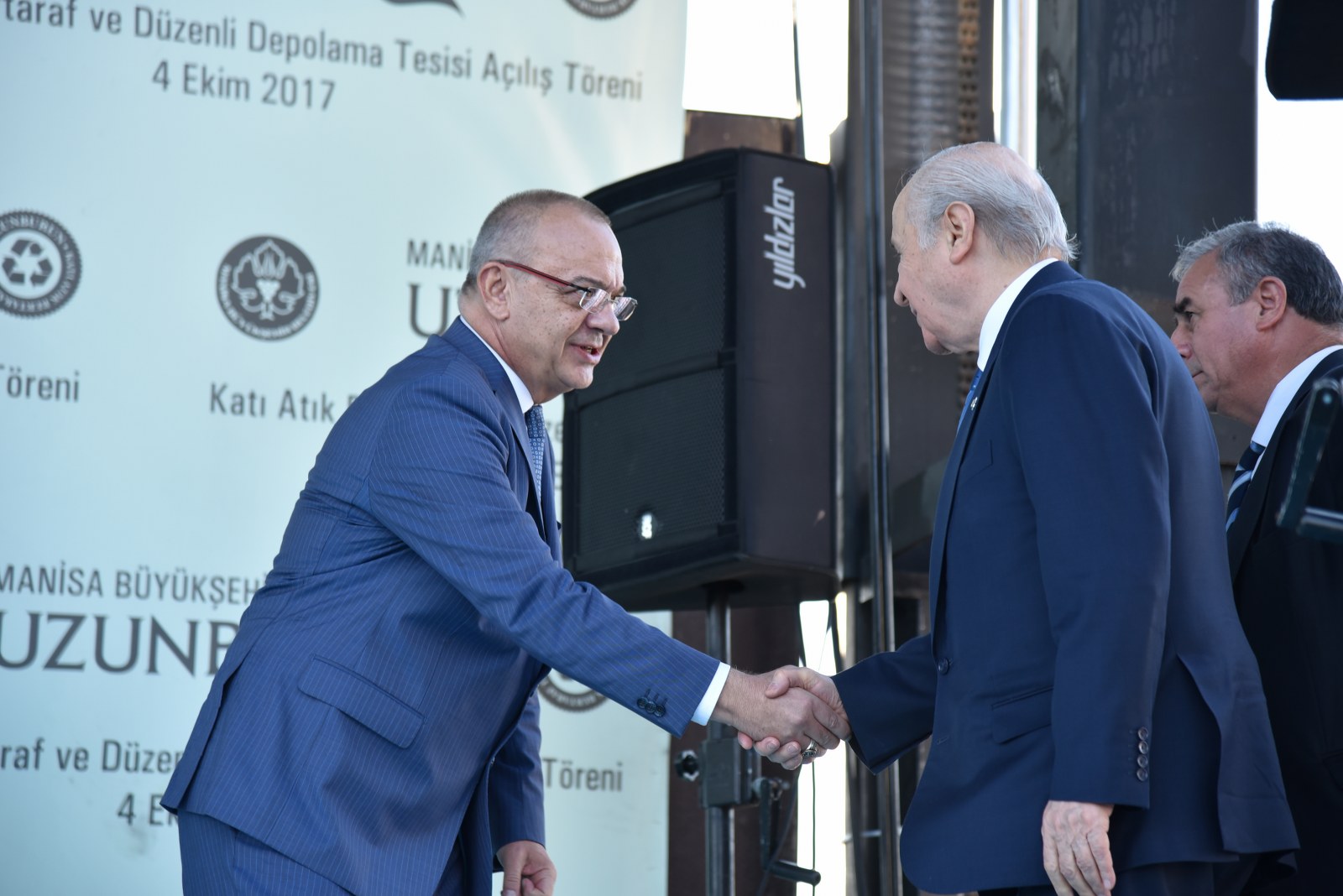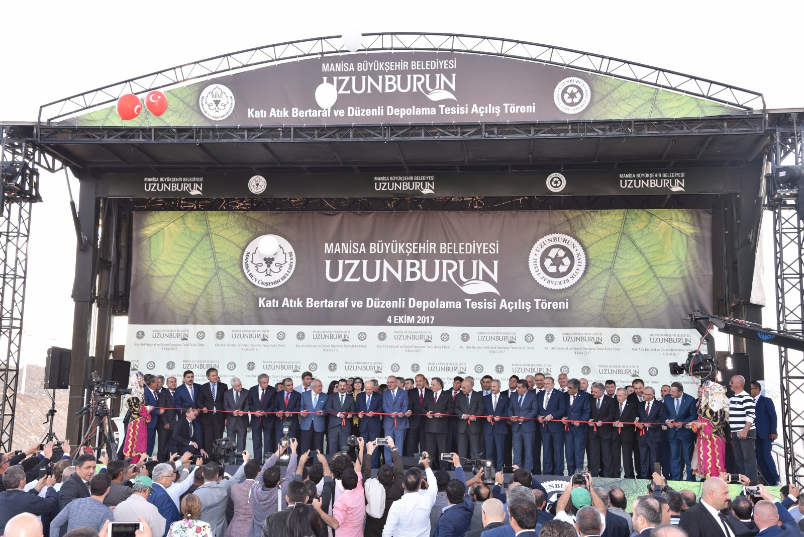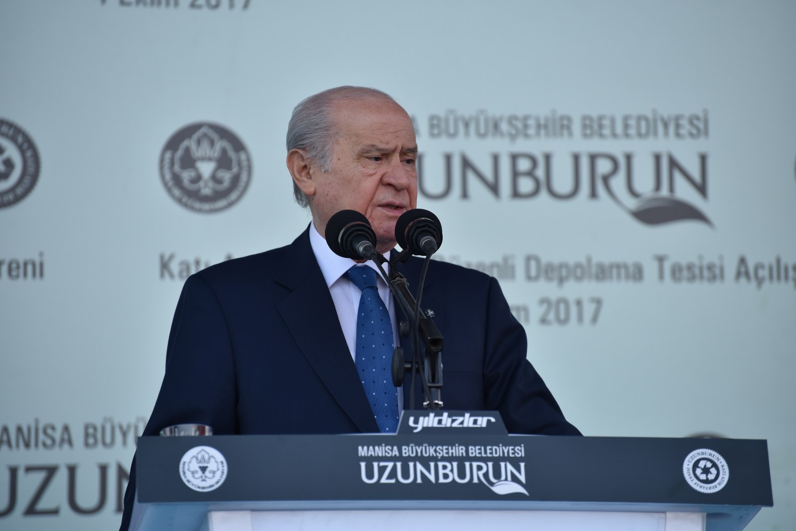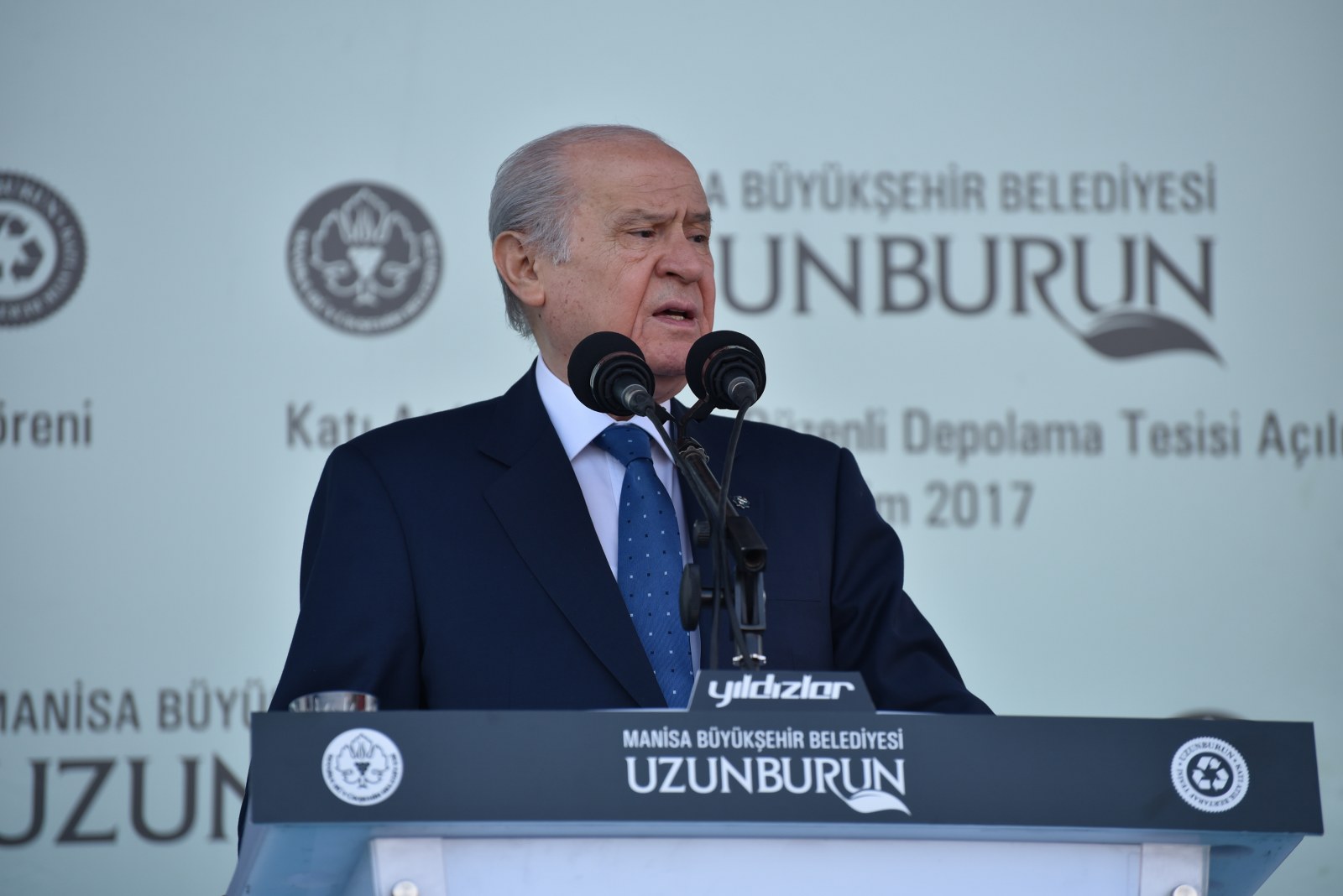 Manisa’nın Çevre Bayramı Çevreci Tesisi Devlet Bahçeli ve Cengiz Ergün Birlikte Açtı110 Milyonluk Çevreci Yatırım HizmetteManisa’nın 40 Yıllık Kabusu BittiManisa’da Çöp Tarih OlduManisa Büyükşehir Belediyesinin şehrin 40 yıllık çöp sorununu tarihe gömdüğü Uzunburun Katı Atık Bertaraf ve Düzenli Depolama Tesisi’nin açılışı, MHP Genel Başkanı Devlet Bahçeli’nin katılımlarıyla gerçekleştirildi. Günlük 650 ton çöpün işleneceği tesisin Manisa’ya hayırlı olmasını dileyen MHP Genel Başkanı Devlet Bahçeli, “Açılışını yapmaktan kıvanç duyduğumuz tesis, milletimizin bize verdiği emanete layık olduğumuzun göstergesi, güvencesidir. Projenin planlama ve yapım aşamasında özverili çalışmalarda bulunan Manisa Büyükşehir Belediye Başkanımız Sayın Cengiz Ergün Bey başta olmak üzere, tüm belediye personelimize, dava arkadaşlarımıza, emeği geçen herkese teşekkürlerimi sunuyorum. Her birini ayrı ayrı tebrik ve takdir ediyorum. Ülkemize, Manisa’mıza ve siz değerli vatandaşlarımıza hayırlı uğurlu olmasını Allah’tan niyaz ediyorum” dedi.Manisa Büyükşehir Belediye Başkanı Cengiz Ergün’ün yoğun çabasıyla 2012’de ilk adımları atılan uzun ve meşakkatli bir sürecin ardından 8 Mart 2016’da temelleri atılan Uzunburun Katı Atık Bertaraf ve Düzenli Depolama Tesisi, görkemli bir törenle hizmete açıldı. Dev tesisin açılış törenine MHP Genel Başkanı Devlet Bahçeli ve Manisa Büyükşehir Belediye Başkanı Cengiz Ergün’ün yanı sıra Genel Başkan Yardımcıları Şefkat Çetin, Celal Adan, Oktay Öztürk, Sadir Durmaz, MHP Genel Sekreteri İsmet Büyükataman, Genel Sekreter Yardımcıları Mustafa Hidayet Vahapoğlu, Mustafa Kalaycı, Başkan Ergün’ün eşi Şeyda Ergün, MHP’li milletvekilleri, ilçe kaymakamları, İl Jandarma Komutanı Tuğgeneral Erhan Can, Emniyet Müdürü Fevzi Bilgiç, Adana Büyükşehir Belediye Başkanı Hüseyin Sözlü, Mersin Büyükşehir Belediye Başkanı Turgutlu Belediye Başkanı Turgay Şirin, Salihli Belediye Başkanı Zeki Kayda, Sarıgöl Belediye Başkanı Necati Selçuk, Alaşehir Belediye Başkanı Dr. Gökhan Karaçoban, Kula Belediye Başkanı Hüseyin Tosun, Selendi Belediye Başkanı Nurullah Savaş, Manisa Büyükşehir Belediyesi Genel Sekreteri Aytaç Yalçınkaya, MASKİ Genel Müdürü Yaşar Coşkun, Ülkü Ocakları Genel Başkanı Olcay Kılavuz, MHP Kadın Kolları Genel Başkanı Nevin Taşlıçay, MCBÜ Rektörü Prof. Dr. Kemal Çelebi, Manisa Büyükşehir Belediyesi Teftiş Kurulu Başkanı Ahmet Türkgüler, Başkan Danışmanları Yasemin Aktan, Nursel Ustamehmetoğlu, Azmi Açıkdil, MASKİ Genel Müdür Yardımcıları, Genel Sekreter Yardımcıları, İller Bankası Bölge Müdürü Enver Çelebi, ilçe belediye başkanları, MHP İl Başkanı Erkan Öztürk, misafir il başkanları, Manisa ve ilçeleri Ülkü Ocakları başkanları, Nazilli, Çal, Aliağa, Isparta, Tarsus, Şalpazarı, Yalvaç, Menemen belediye başkanları, Büyükşehir Belediye Meclisi MHP Grup Başkanvekili Mehmet Güzgülü, Büyükşehir ve ilçe belediye meclis üyeleri, Büyükşehir ve MASKİ daire başkanları, sivil toplum kuruluşlarının temsilcileri, ulusal, bölgesel ve yerel gazetelerin temsilcileri, mahalle muhtarları ve çok sayıda vatandaş katıldı.Manisa İçin Tarihi GünSaygı duruşu ve İstiklal Marşı’nın okunmasıyla başlayan törende, tesisin tanıtımının yer aldığı film gösterisi gerçekleştirildi. Ardından törenin açılış konuşmasını yapmak üzere Manisa Büyükşehir Belediye Başkanı Cengiz Ergün sahneye davet edildi. Şahsı adına ve Manisa adına önemli ve tarihi günlerden birini yaşadıklarını belirten Başkan Ergün, Bugün Manisa’mız için şahsım için ve hatta ülkemiz için önemli bir gün. Şehircilik ve çevre adına bir devrin kapandığı ve yeni bir devrin başladığı gün. Bugün Manisa’mızın geleceğini kurtaracak ve ülkemiz ekonomisine önemli bir katkı sağlayacak Türkiye’nin yerel yönetim kaynaklarıyla yapılan en büyük entegre tesisinin açılış günü. Bu kutlu günde bizi yalnız bırakmayan, öngörüleriyle ne kadar haklı olduğu bugünlerde çok daha net anlaşılan, ülke gündemi bu kadar yoğunken bizlere vakit ayıran Türkmen Beyimiz, değerli Genel Başkanımız Sayın Devlet Bahçeli Beyefendi’ye ve Manisa’mıza dışarıdan teşrif eden tüm konuklarımıza hemşerilerim adına hoş geldiniz diyorum” dedi.“Manisa sevdamızla dağları delip yolları ve dev tesisi yaptık”8 Mart 2016’da tesisin temelinin atıldığını hatırlatan Başkan Ergün, “O günü Manisa’nın bayram günü olduğunu belirtmiş, açılışını yapacağımız günün de düğün günü olacağını ifade etmiştim. Aradan tam 1,5 yıl geçti. Böyle kısa bir sürede bu önemli çevreci yatırımı açılışa hazır hale getirmenin heyecanı ve mutluluğunu yaşadığımı belirtmek isterim. Bu sürece 2012 yılında Katı Atık Bertaraf Tesisinin yerinin bulunmasıyla başladık. Çok uzun, yorucu, oldukça meşakkatli bir sürecin ardından çalışmasına başlayabildik. Bugün Uzunburun Katı Atık Bertaraf ve Düzenli Depolama Tesisi olarak gördüğünüz bu alan, o dönem ot bitmeyen bir dağ başıydı. Buraya çıkacak yol bile yoktu. Kendi ekiplerimizle kendi imkanlarımızla ilk olarak buraya çıkacak yolları yaptık. Manisa’ya olan sevdamızla dağları delip, yolları ve nihayetinde bu önemli tesisi hayata geçirdik” dedi.Günlük 650 Ton Çöp İşlenecekÇevreci tesisin teknik detayları hakkında bilgi veren Başkan Ergün, “Manisa’mızın 40 yıllık çöp sorununu çözecek Katı Atık Bertaraf ve Düzenli Depolama Tesisimiz, toplam 440 dönümlük arazi üzerine kurulmuş olup günlük 650 ton çöp işleme kapasitesine sahiptir. Peki bugüne kadar ne yapılıyordu? Toplanan