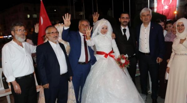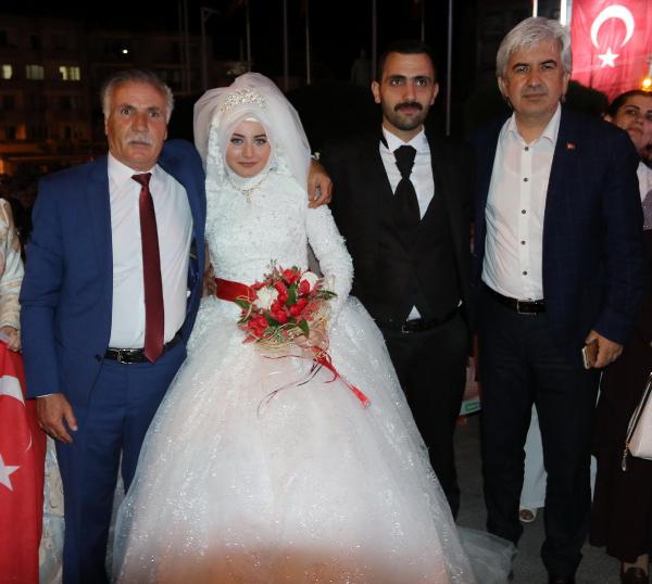 Manisa'da gelin ve damat düğünün ardından demokrasi nöbetine katıldı