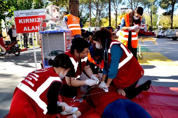 Manisa İl Sağlık Müdürlüğü Afetlerde Sağlık Hizmetleri Birimi ile Sarıgöl Devlet Hastanesi Sivil Savunma ekibi ortaklığında yangın tatbikatı yapıldı. Senaryo gereği Kadın Doğum Servisi'nde, elektrik prizinden yangın çıktı. Alevler, kısa sürede diğer birimlerdeki servislere sıçradı. Yangına ilk müdahaleyi hastanenin kurtarma ekibi ile UMKE ve Sarıgöl Belediyesi İtfaiye Amirliği ekipleri gerçekleştirdi. Tahliye edilen yaralılara da tıbbi müdahale yapıldı. Tatbikatın başarıyla tamamlandığı kaydedildi. Başhekim Opr. Dr. Mehmet Karaduman, "Her an, her şey olacakmış gibi hazırlıklı olmak zorundayız. Eksiklerimizi görüp, onları sıfırlamaya çalışıyoruz. Mesai arkadaşlarımız ve tatbikata katılan öğrenciler olsun herkes, canla başla görevlerini başarıyla yaptı. Onların bu ciddiyetlerini ve başarılarını kutluyor, teşekkür ediyorum" dedi. DHA