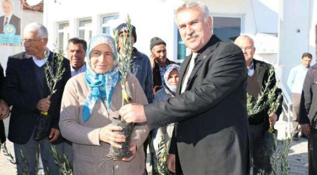 Manisa'da zeytin üreticisine fidan desteğiMANİSA Büyükşehir Belediyesi, 'Meyveciliği Geliştirme Projesi' kapsamında Selendi ilçesindeki üreticilere 10 bin 584 adet zeytin fidanı dağıttı. Manisa'nın tarımsal potansiyelini ortaya çıkarmak amacıyla üreticiye destek veren Manisa Büyükşehir Belediyesi, Selendili 76 üreticiye 10 bin 584 adet zeytin fidanı dağıttı. Selendi'deki zeytin fidanı dağıtım törenine, Büyükşehir Belediyesi Kırsal Hizmetler Dairesi Başkanlığı yetkilileri, Büyükşehir Belediyesi Selendi Koordinasyon İşleri Müdürü İbrahim Kara, yetkililer ile üreticiler katıldı. Çiftçilere fidan dağıtım töreninde konuşan Büyükşehir Belediyesi Selendi Koordinasyon İşleri Müdürü İbrahim Kara, "Meyve yetiştiriciliğinin geliştirilmesi projesi kapsamında Manisa Büyükşehir Belediye Başkanlığımız yüzde 75 hibe desteği ile 10 bin 584 adet zeytin fidanını 76 üreticimize dağıtıyoruz. Bu güne kadar 74 bin adet ceviz, badem ve zeytin fidanını toprakla buluşturduk.Yeraltı ve yerüstü su kaynaklarının değerlendirilmesi ve sulu tarıma açılabilmesi için 2016 yılı içinde Selendi'de 9 adet hayvan içme suyu göleti yapıldı. Halen yapımı devam eden göletler de var. Örtü altı yetiştiriciliğinin geliştirilmesi kapsamında 100 üreticimize yüzde 75 hibe desteği ile 500 metrekarelik sera kurulması için çalışmalar da devam etmektedir. Şu ana kadar ilçemize ayrılan 38 adet seradan 30 adet seranın kurulumu tamamlandı" dedi. Konuşmalarından ardından üreticilere zeytin fidanları dağıtıldı. dha