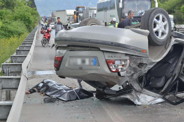 Manisa'da zincirleme kaza: 1 ölü, 4 yaralı MANİSA'da, 4 aracın karıştığı zincirleme kazada, 1 kişi öldü, 4 kişi yaralandı.Kaza, dün saat 16.00 sıralarında, İstanbul- İzmir karayolunun Manisa girişi Gediz Köprüsü yakınlarında meydana geldi. İstanbul yönünden gelen İrem Ç., yönetimindeki 45 NK ... plakalı otomobille, önündeki TIR'a çarpmamak için manevra yaptı. Aynı yönde ve önünde olan Aydın Y.'ın yönetimindeki 35 RBT... plakalı hafif ticari araca arkadan çarptı. Daha sonra karşı şeride geçen otomobil, Nuri Y.. yönetimindeki 35 KA ...plakalı otomobile yandan çarptı, yine karşı yönden gelen Ali D. yönetimindeki 35 GA 2...plakalı otomobille çarpıştı. İrem Ç. yönetimindeki otomobil, takla atıp ter döndü. Kazada sürücü İrem Ç., kardeşi Ayça Ç. ve aracında bulunan Ayşe Feryal T. ile diğer araç sürücüsü Ali D. yaralandı. İrem Ç.in otomobilinde bulunan 54 yaşındaki Ayşe Fazla Ç. kaza yerinde öldü. Yaralılar ambulanslarla kentteki çeşitli hastanelerine kaldırılarak tedaviye alındı. Karayolu her iki yöne yaklaşık 40 dakika kapalı kaldı. Jandarma, kazayla ilgili soruşturma başlattı. dha