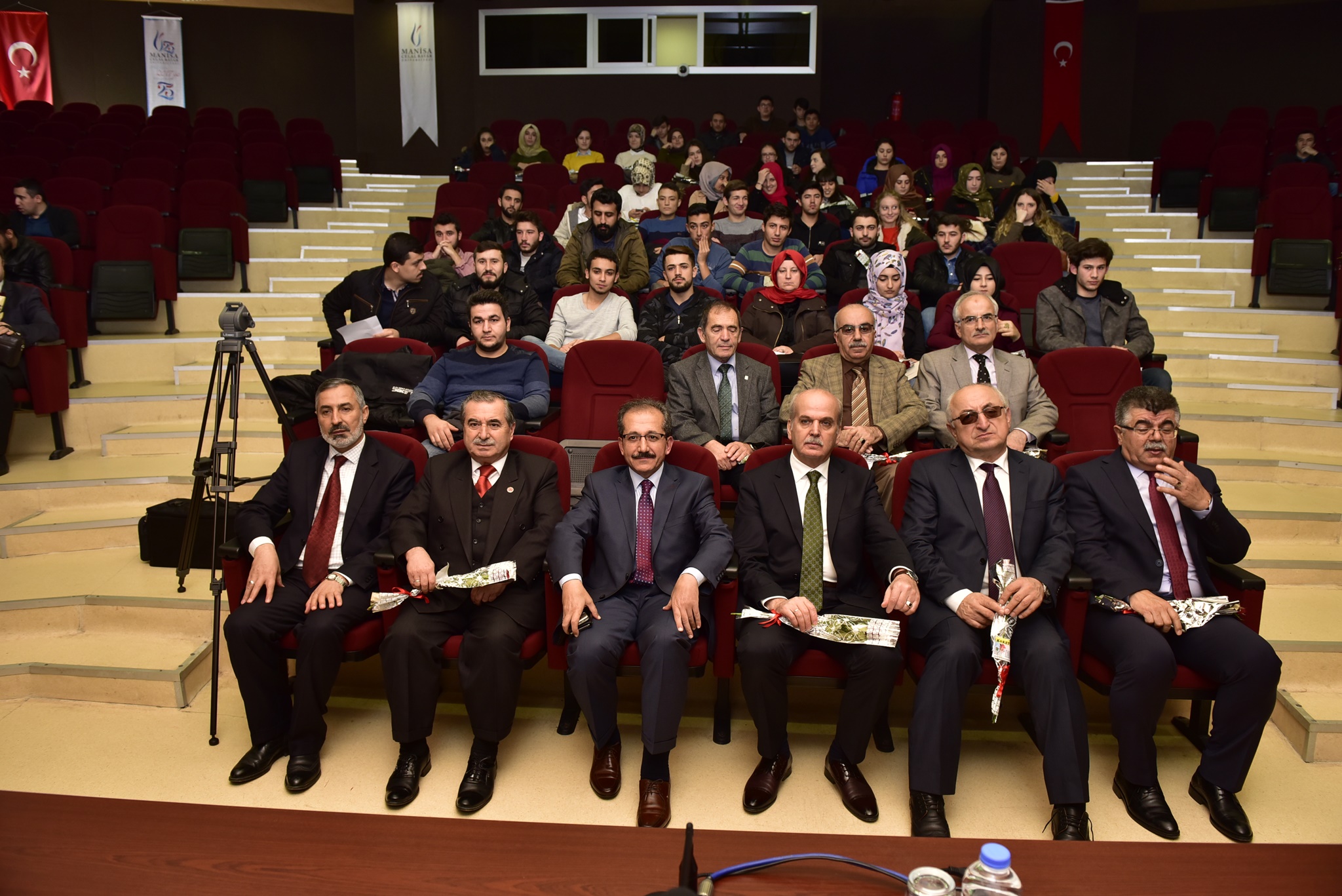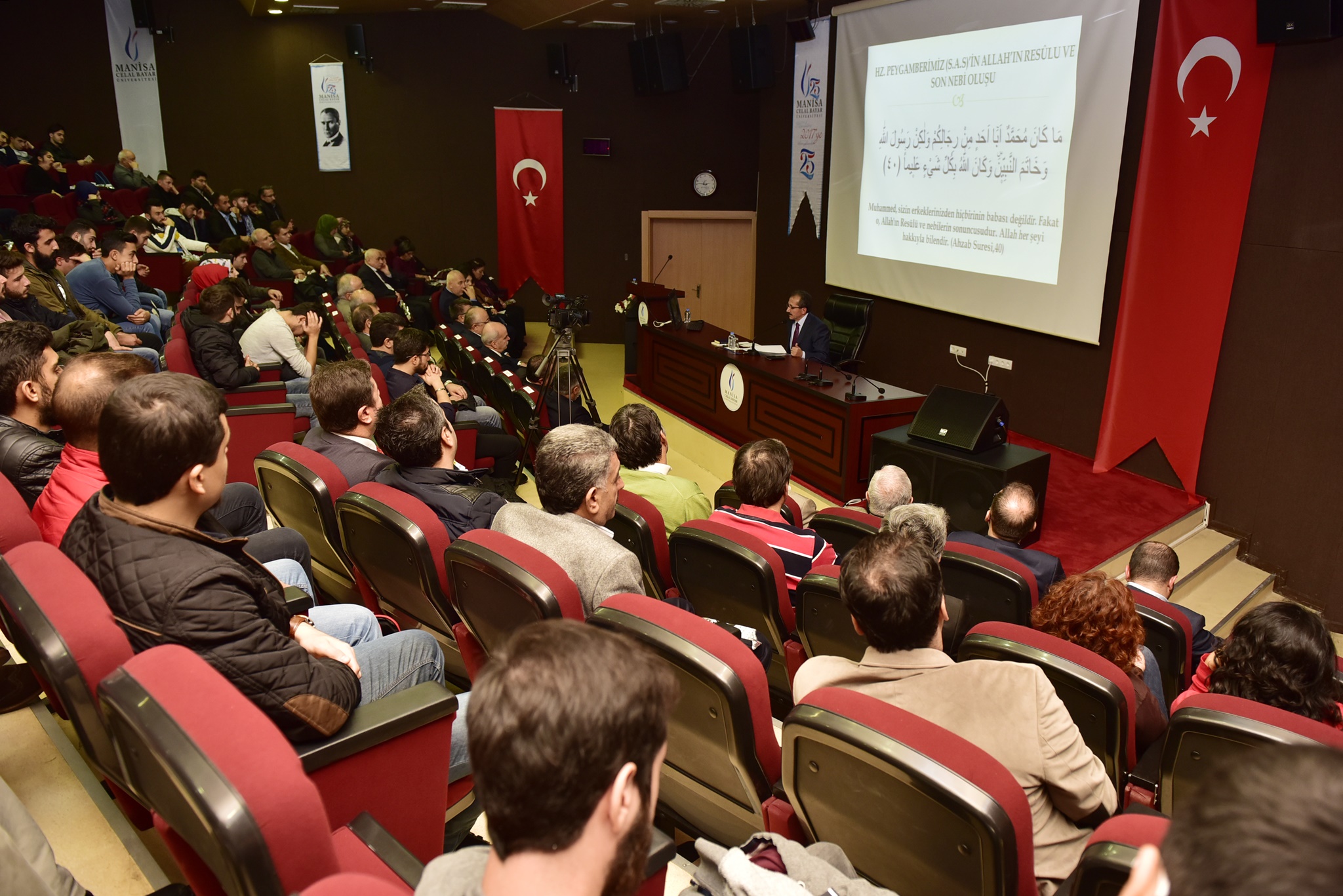 Mevlid Kandili nedeniyle Manisa Celal Bayar Üniversitesi Rektörlüğü tarafından düzenlenen “En Güzel Örneğimiz Hz. Peygamberimiz” konulu konferans, 29 Kasım 2017 tarihinde MCBÜ Prof. Ümit Doğay Arınç Kültür Merkezinde gerçekleştirildi.Program öncesinde Prof. Ümit Doğay Arınç Kültür Merkezi önünde lokma ikram edildi ve konferansa gelen konuklara gül takdim edildi.Manisa İl Müftüsü Sinan Cihan’ın konuşmacı olarak katıldığı konferansa; MCBÜ Rektörü Prof. Dr. A. Kemal Çelebi, Rektör YardımcıIarı Prof. Dr. Muzaffer Tepekaya ve Prof. Dr. Birol Kovancılar, Manisa Büyükşehir Belediyesi İnsan Kaynakları ve Eğitim Dairesi Başkanı Muzaffer Şaşmaz, Şehzadeler Belediye Başkan Yardımcısı İsmail Önal, MCBÜ Genel Sekreteri Ali Emirosmanoğlu ve Genel Sekreter Yardımcısı Fuat Aydın, öğretim üyeleri ve çok sayıda öğrenci katıldı.Kur’an-ı Kerim Tilavetinin ardından kürsüye gelen Manisa İl Müftüsü Sinan Cihan, Mevlid Kandilinin hayırlara vesile olması temennisiyle başladığı konuşmasında, “Konuşmama bizi öğrencilerimizle ve akademisyenlerimizle buluşturduğu için Rektörümüz Prof. Dr. Kemal Çelebi’ye çok teşekkür ederek başlamak istiyorum. Mevlid kelime anlamı olarak doğum günü demektir. Peygamberimiz Hz. Muhammed’in Mekke’de dünyayı şereflendirmesinin adıdır. Peygamber Efendimizin hayatında doğum yıldönümleri kutlanmamıştır. Emevi ve Abbasi Dönemlerinde de böyle bir etkinlik yoktur. Mısır’da kurulan Fatimiler Döneminde 972-975 yılları arasından itibaren kutlanmaya başlanmıştır. Mevlid Kandili olarak kutlanan bu uygulamanın başlangıcı Mısır’da Fatimi Devletinin Hükümdarlarından Muiz-Lidinillah Döneminde başlamış, Eyyubiler Döneminde devam etmiş, daha sonra da İslam Dünyasının her bölgesine dağılmıştır. Bugün İslam Dünyasının tamamında Mevlid Kandili adı altında pek çok etkinlik gerçekleşmektedir. Mevlid Kandili programları son derece olumlu sonuçlara vesile olmaktadır. Örneğin bizim programımız Kur’an-ı Kerim Tilaveti ile başladı. Kur’an-ı Kerim okunarak başlanan bir program da kesinlikle güzel sonuçlar doğuracaktır. Peygamber Efendimizin vasıfları, güzellikleri paylaşılıyor ve uzun zamandır birbirini görmemiş insanların buluşmasına, selamlaşmasına vesile oluyor. Bu güzellikleri ile muhafaza etmek, ihtilaf aracı olarak kullanılmasına da izin vermemek lazımdır” dedi.Peygamber Efendimizin doğumu başlığı altında, insanlığın yeniden doğuşundan bahsedilebileceğini ifade eden Cihan, “Çünkü Cahiliye Dönemi denilen o dönemde insani bütün özellikler kaybolmuştur. Cahiliye Dönemindeki sosyal hayatın kriterlerini göz önünde bulundurduğumuzda; güçlünün daima haklı, haklının ise eğer zayıfsa daima haksız olduğu bir sistem yerleşmiştir. Peygamber Efendimizin dünyayı şereflendirmesi; insanlığın yeniden hak, hukuk ve evrensel ahlaki değerlerle buluşmasının başlangıcı olmuştur. Hz. Peygamberimizin peygamberlikten önceki hayatı da başını öne eğdirecek hiçbir davranışı barındırmamaktadır. O’nun hayatı kadar berrak, bilinir, görülür hiçbir hayat yoktur. Hayatının gizli kalmış, anlaşılmamış, anlatılmamış hiçbir bölümü yoktur. Dolayısıyla Peygamberimizin sünneti, Kuran- Kerim’in yaşayan şeklidir. Peygamber Efendimiz olmadan din de olmaz. Kur’an-ı Kerimi bize ulaştıran, Kur’an-ı Kerim’in bütün ayetlerinin muhatabı Peygamber Efendimizdir. O’nun hayatı göz ardı edilerek İslam Dininin anlaşılması mümkün değildir. Peygamber Efendimizin getirdikleri ile bizim tercihlerimiz ve önceliklerimiz arasındaki mesafe açıldıkça, bizim problemlerimiz de yoğunlaşır ve kronik hale gelir. O’nun değerleri evrenseldir” dedi.Günümüzde pek çok sahte peygamberler türediğini vurgulayan Sinan Cihan, “Belki peygamberim demiyorlar ama başka başlıklar altında kendisini Peygamber Efendimizin yerine koymaya çalışan pek çok zevat ortalıkta dolaşıyor. İslam Dünyasının yeni bir peygambere ihtiyacı yoktur. Güzel alimlere, güzel ariflere ihtiyacı vardır. Peygamber Efendimize hayırlı halef olabilmiş alimlere ve ariflere ihtiyacımız vardır” diye konuştu.Peygamber Efendimizin özelliklerinden de bahseden Cihan, “Her zaman güler yüzlüdür. Yumuşak huylu, nazik ve kibardır. Kimseyi kırmaz, bağırıp çağırmaz. Kusur bulmaz, cimri değildir. Hoşlanmadığı şeyleri görmezden gelir, zamana bırakır. Kendisinden beklentisi olan kimseleri hayal kırıklığına uğratmaz. İşte bu hususlar günlük yaşantımızda kendisine yer bulabilse tüm meseleler de ortadan kalkar” dedi. Peygamber Efendimizle ilgili olarak Kur’an-ı Kerim’de yer alan ayetlerden de örnekler veren Sinan Cihan’a, konuşmasının sonunda Rektör Prof. Dr. A. Kemal Çelebi tarafından teşekkür belgesi ve çiçek takdim edildi.