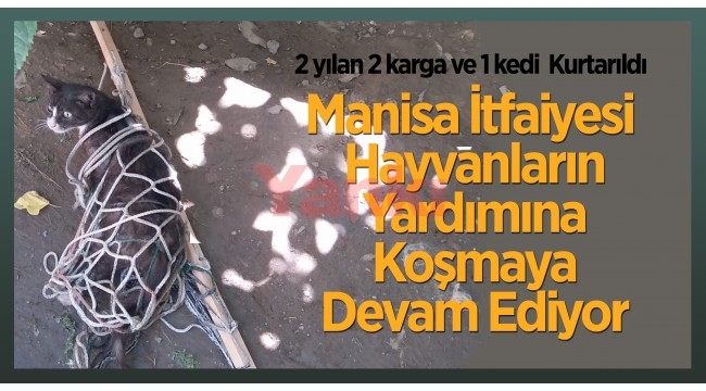 Manisa İtfaiyesi Hayvanların Yardımına Koşmaya Devam EdiyorManisa Büyükşehir Belediyesi İtfaiye Amirliği ekipleri, yangınlarla olan zorlu mücadelesinin yanında yardıma muhtaç durumda olan hayvanların yardımına koşmaya devam ediyor. Manisa İtfaiyesi tarafından bugün gerçekleştirilen operasyonlarda çeşitli yerlerde mahsur kalan 2 yılan 2 karga ve 1 kedi kurtarılarak doğal ortamlarına salındı.