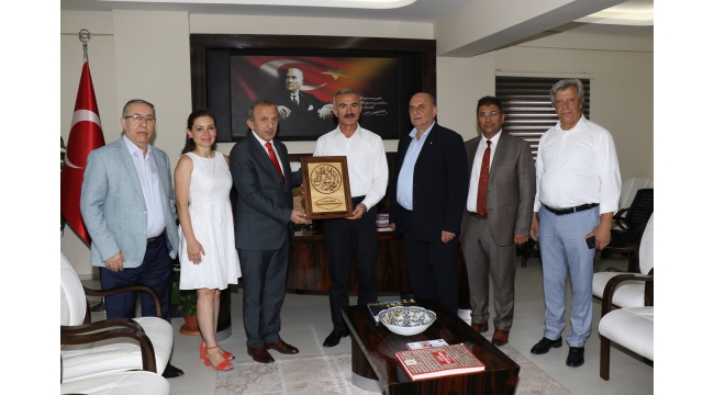 Manisa TSO’dan Ziyaret TuruManisa Ticaret ve Sanayi Odası Yönetim Kurulu Başkanı Mehmet Yılmaz, Meclis Başkanı Ümit Türek ve Yönetim Kurulu Üyeleri ile birlikte Cumhuriyet Başsavcısı Ahmet Çiçekli, Yunusemre Kaymakamı Ahmet Erdoğdu ve Şehzadeler Kaymakamı İsmail Çorumluoğlu’nu makamlarında ziyaret ettiler.Manisa Ticaret ve Sanayi Odası protokol üyelerine gerçekleştirdiği nezaket ziyaretlerini sürdürüyor. Manisa Ticaret ve Sanayi Odası Yönetim Kurulu Başkanı Mehmet Yılmaz, Meclis Başkanı Ümit Türek, Yönetim Kurulu Başkan Yardımcıları Arkın Şıktaşlı, Sezen Şenay, Yönetim Kurulu Muhasip Üyesi Muzaffer Topbaş, Yönetim Kurulu Üyeleri Ali Karanfilci, Hüseyin Hasacar ve Genel Sekreter Filiz Kavaklı’dan oluşan heyet ziyaret programı kapsamında ilk olarak Manisa Cumhuriyet Başsavcısı Ahmet Çiçekli’yi makamında ziyaret ettiler.7 Nisan’da başlayan ve 13 Nisan’da sona eren seçim takvimini sorunsuz bir şekilde tamamlayarak yeni yönetim kurulunu oluşturduklarını belirten Manisa Ticaret ve Sanayi Odası Yönetim Kurulu Başkanı Mehmet Yılmaz, ‘Nisan ayında başlayan seçim takvimini başarıyla tamamladık. Hemen akabinde Türkiye Odalar ve Borsalar Birliği seçimlerimizi gerçekleştirdik. Yoğun tempoda geçen bu süreçte protokol üyelerimizi de ziyaret ediyoruz. Sayın Başsavcımız seçimlerimizin ardından odamıza gelerek bizleri tebrik etmişti. Bugünde kendisine iade-i ziyarette bulunmak istedik. Odamızın çalışmaları hakkında, yönetim kurulumuzun projeleri hakkında kendisine bilgi vereceğiz. Yoğun programları için bizleri de makamlarında kabul ettiği ve vakit ayırdığı için Sayın Başsavcımıza teşekkür ediyorum. Manisa Ticaret ve Sanayi Odası olarak kurumlar arasında yapılacak işbirliğine geçmişte olduğu gibi bundan sonra da her zaman hazır olduğumuzu ifade etmek istiyorum’ dedi.Ziyaretten duyduğu memnuniyeti dile getiren Cumhuriyet Başsavcısı Ahmet Çiçekli, Manisa Ticaret ve Sanayi Odası Yönetim Kurulu Başkanı Mehmet Yılmaz, Meclis Başkanı Ümit Türek ve Yönetim Kurulu Üyelerine yeni görevlerinde başarı dileklerini iletti.Manisa Ticaret ve Sanayi Odası heyeti daha sonra sırasıyla Yunusemte Kaymakamı Ahmet Erdoğdu ve Şehzadeler Kaymakamı İsmail Çorumluoğlu’nu makamlarında ziyaret ettiler.Manisa Ticaret ve Sanayi Odası Yönetim Kurulu Başkanı Mehmet Yılmaz her iki ziyarette ‘Manisa için ben değil, biz’ sloganıyla yola çıktıklarını belirterek, kurumlar arası işbirliğine verdikleri önemi bir kez daha vurguladı.Yunusemre Kaymakamı Ahmet Erdoğdu ve Şehzadeler Kaymakamı İsmail Çorumluoğlu da ziyaretlerden duydukları memnuniyeti dile getirerek, Manisa Ticaret ve Sanayi Odası yönetimine başarılar dilediler.Manisa Ticaret ve Sanayi Odası Yönetim Kurulu Başkanı Mehmet Yılmaz ve beraberindeki heyet gerçekleştirdikleri ziyaretlerde günün anısına Naht Sanatı eserlerini hediye ettiler.