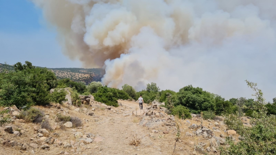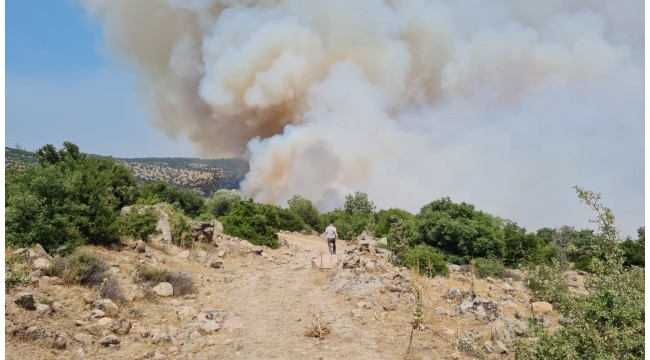 Manisa Yunt Dağındaki makilik yangını rüzgar engeline takıldı