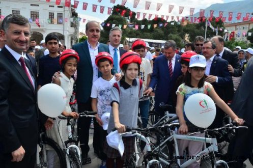 BAŞBAKAN Yardımcısı Numan Kurtulmuş, Manisa'da çocukları hareketli yaşama teşvik etmek için 784 bisiklet dağıttı.