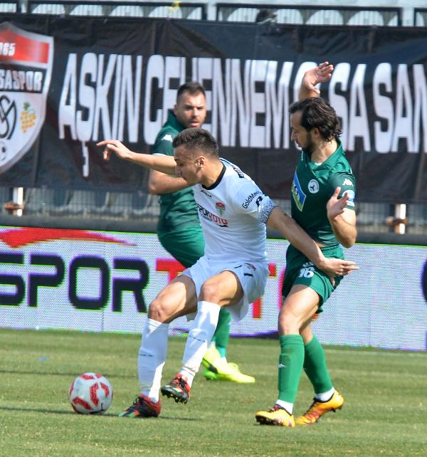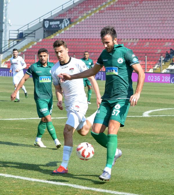 Manisaspor-Giresunspor: 1-2Mehmed Hakkı ÖZBAYIR / MANİSA, (DHA)STAT: 19 Mayıs HAKEMLER: Mustafa Öğretmenoğlu (xx), Kamil Çetin (xx), Murat Ergin Gözütok (xx)MANİSASPOR: İsmail Şahmalı (xx)- Sebaihi (x) (Dk.57 Ozan x), Mikic (x), Dimov (x), Ufuk (x), Erman (xx), Metin (xx), Umut (x) (Dk.86 Savaş), Gökhan (xx), Perovic (x) (Dk.71 Mertan x), Bahattin (xxx) GİRESUNSPOR: Eser (xx)- Dimitriadis (xxx), Hüsamettin (xxx), Özgür (xx), Berkan (xx), Dodo (xx), Abwo (xxx), Onur (xxx), Recep (xxx) (Dk.74 Isaac xx), Dilaver (xx) (Dk.57 Lopes x), Özgürcan (xxx) (Dk.84 Rızvan)GOLLER: Dk.36 Bahattin (Manisaspor), Dk.21 Recep, Dk.29 (penaltı) Özgürcan (Giresunspor) KIRMIZI KART: Dk. 81 Lopes (Giresunspor)SARI KARTLAR: Dimov, Metin, Sebaihi, Gökhan (Manisaspor), Lopes, Dimitriadis (Giresunspor)TFF 1'inci Lig'de üst üste iki 5 gollü galibiyetle düşme hattından sıyrılan Manisaspor, evinde Giresunspor'a 2-1 mağlup oldu.Bu skorla Manisaspor, 20 puanda kalırken Giresunspor, puanını 36'ya çıkardı.21'inci dakikada Giresunspor gol perdesini açtı. Dimitriadis'in pasıyla buluşan Recep düzgün bir vuruşla kelaci İsmail'i mağlup etti: 0-1. 29'uncu dakikada Giresunspor penaltıdan farkı 2'ye çıkardı. Abwo'nun pasıyla ceza alanına giren Özgürcan, Dimov'la girdiği mücadelede yerde kalınca Hakem Mustafa Öğretmenoğlu beyaz noktayı gösterdi. Atışı Özgürcan gole çevirdi: 0-2.36'ıncı dakikada Manisaspor umutlandı. Metin'in ara pasıyla ceza alanına sokulan Bahattin plase vuruşla meşin yuvarlağı filelere gönderdi: 1-2. 54'üncü dakikada Manisaspor golden oldu. Ceza sahasında topu ayağında bulan Bahattin, kaleci Eser'in öne çıktığını görüp aşırttı, Onur topu çizgiden çıkardı. 72'nci dakikada Giresunlu Özgürcan sol kanattan hareketlenip Dimitriadis'i gördü. Dimitriadis, mütsait pozisyonda topu yandan auta gönderdi. 81'inci dakikada Giresunspor 10 kişi kaldı. Oyuna 57'nci dakikada dahil olduktan sonra sarı kart gören Lopes, rakibine yaptığı faul sonrası ikinci sarıdan kırmızı kartla oyundan atıldı.Maçın ardından yaptıkları açıklamalarda Manisaspor Teknik Direktörü Sait Karafırtınalar yenilmezlik serisinin bittiğini ve büyük üzüntü yaşadıklarını ifade etti. Karafırtınalar, "Giresunspor bir takımın deplasmanda nasıl oynaması gerektiğini bugün çok iyi gösterdi. Biri bireysel hatadan, diğeri penraltıdan kalemizde 2 gol gördük. Artık bu maçı unutup gelecek hafta deplasmanda karşılaşacağımız Göztepe müsabakasına odaklanacağız" yorumunu yaparken,Giresunspor Teknik Direktörü Yücel İldiz, deplasmanda çok önemli bir galibiyet aldıklarını söyledi. Deneyimli çalıştırıcı, "Sezonun en zor deplasman maçlarından birini kayıpsız geçmek bizim için büyük mutluluk oldu. İlk yarı dengeli bir mücadele vardı. Üst üste golleri bulduk. Daha sonra kendi hatamızdan dolayı bir gol yedik. Netice kazanmak her şeyden önemliydi" ifadelerini kullandı.DHA