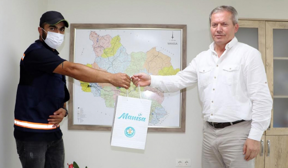 Manisa Su ve Kanalizasyon İdaresi (MASKİ) Genel Müdürlüğü Kanalizasyon Dairesi Başkanlığı personellerinden Selami Sönmez, sahada yaptığı çalışma sırasında bir cüzdan buldu. İçerisinde belli bir miktar para, bazı belgeler ve kimlik kartı bulunan cüzdanı sahibine ulaştırılması için birim sorumlularına teslim etti. Cüzdanın Fatma Sönmez adlı vatandaşa ait olduğu belirlendi ve hemen iletişim kuruldu. Durumdan haberdar olan Kanalizasyon Dairesi Başkanı Mümin Deniz, personeli Selami Sönmez ve Fatma Bayram’ı MASKİ’de ağırladı. Daire Başkanı Mümin Deniz, örnek olacak bir davranış sergilediği için personeli Selami Sönmez’e teşekkür ederek, hediye takdim etti. Cüzdanı bulan personel Selami Sönmez ise, “Çalışma anında cüzdanı buldum ve hiç tereddüt etmeden üstlerime bildirdim. Buradaki amirlerim, müdürlerim, birim sorumlularım ve Daire Başkanım hemen harekete geçerek, cüzdanın sahibi Fatma Sönmez’e ulaşmışlar. Kurumum ve kendi adıma yakışanı yaptım. Mutluyum” dedi.