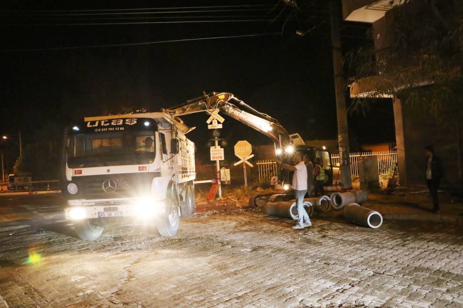 MASKİ Genel Müdürlüğü, Turgutlu ilçesine bağlı Urganlı mahallesinde yürüttüğü altyapı çalışmalarına hızla devam ediyor. Mahallede bulunan hemzemin geçitte yapılan çalışmalarda, vatandaşları mağdur etmemek adına yoğun mesai harcayan ekipler, sokağa çıkma kısıtlamasının olduğu gece saatlerinde çalışmalarını sürdürdü. MASKİ Genel Müdür Yardımcısı Erman Aydınyer de çalışmaları yerinde takip etti.