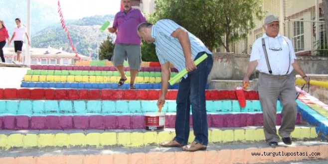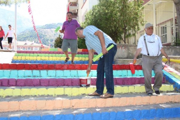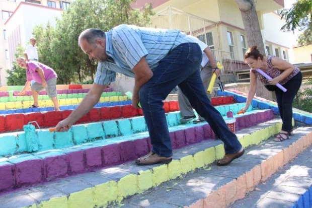 Manisa'da bir grup, Fatih Parkı girişindeki 25 basamaklı merdiveni rengarenk boyadı.