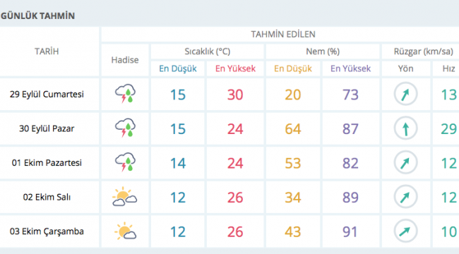 'Orta Akdeniz üzerinde oluşan tropik fırtınanın, Pazar günü ülkemizin batı kesimlerini etkilemesi bekleniyor. Bu sistemle birlikte Ege'nin batısında (İzmir, Muğla, Aydın ve Manisa), Marmara'nın batısında (Çanakkale, Balıkesir, Tekirdağ, Kırklareli, Edirne'nin güneyi ile batı kesimleri başta olmak üzere İstanbul’da da) yerel olarak çok kuvvetli ve şiddetli, Çanakkale ve Muğla ile İzmir ve Balıkesir'in batı kesimlerinde yer yer aşırı (100 kg/m2 üzeri sağanak ve gök gürültülü sağanak yağış beklendiğinden sel, su baskını, yıldırım, hortum , ulaşımda aksamalar gibi olumsuzluklara karşı dikkatli ve tedbirli olunmalıdır.'' Doğan ÇİZMECİ