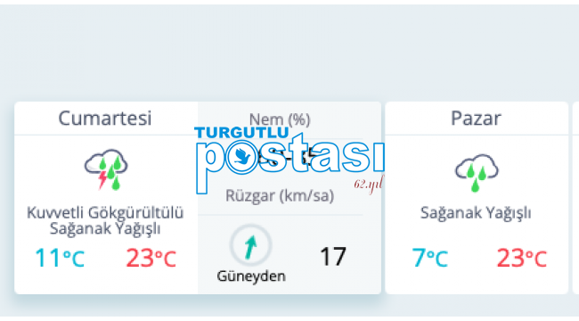 Meteoroloji. Genel Müdürlüğü Tahmin ve Erken Uyarı Merkezi'nden yapılan açıklamada, "Yapılan son değerlendirmelere göre; Manisa il genelinde devam etmekte olan gökgürültülü sağanak yağışların, bugün akşam saatlerinden itibaren etkisini artırarak Manisa merkez ve batısında (Soma, Kırkağaç, Akhisar, Saruhanlı, Turgutlu, Ahmetli, Salihli, Gölmarmara ve Gördes) kuvvetli (21-50 kg/m2) olması beklendiğinden ani sel, su baskını, yıldırım, yerel dolu yağışı, yağış anında kısa süreli fırtına ve hortum oluşma riski gibi olumsuzluklara karşı dikkatli ve tedbirli olunması gerekmektedir" ifadelerine yerdi verdi