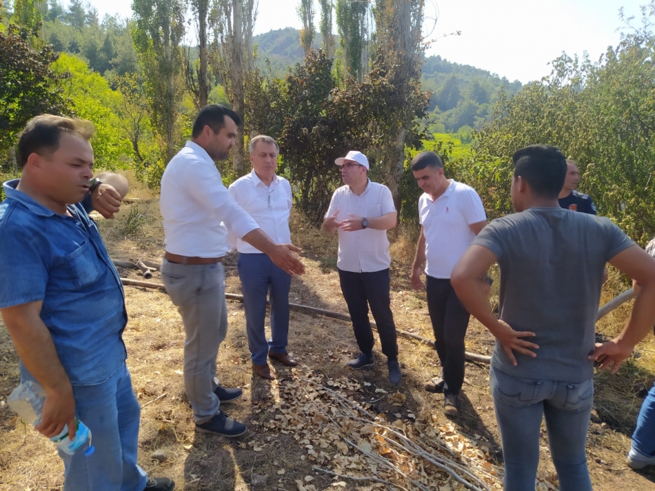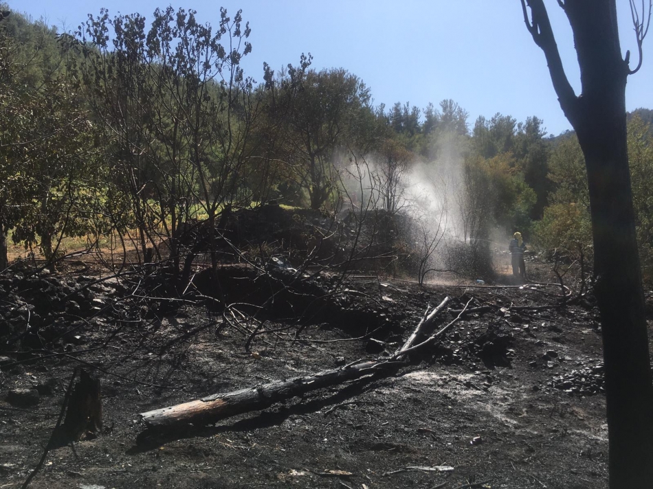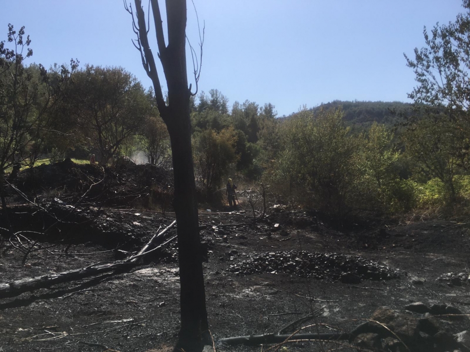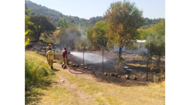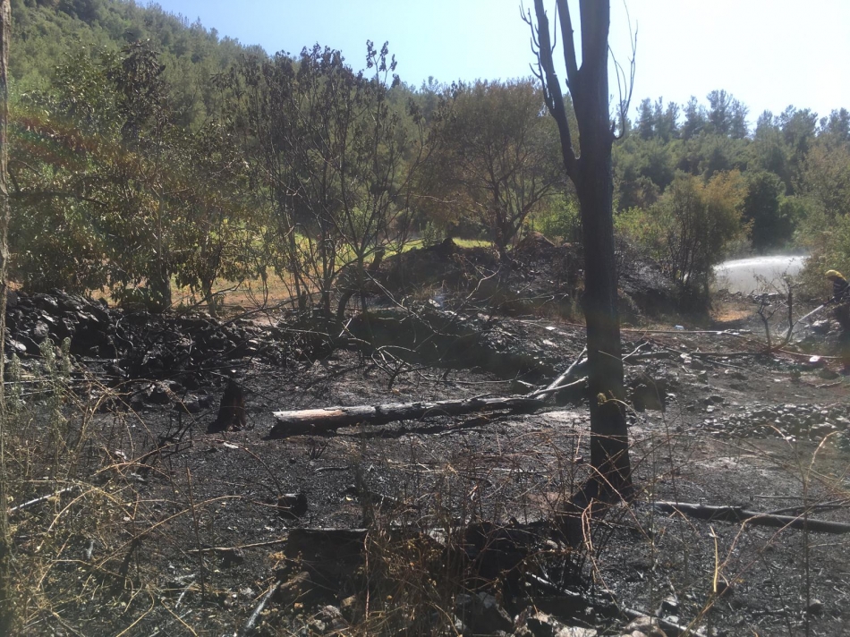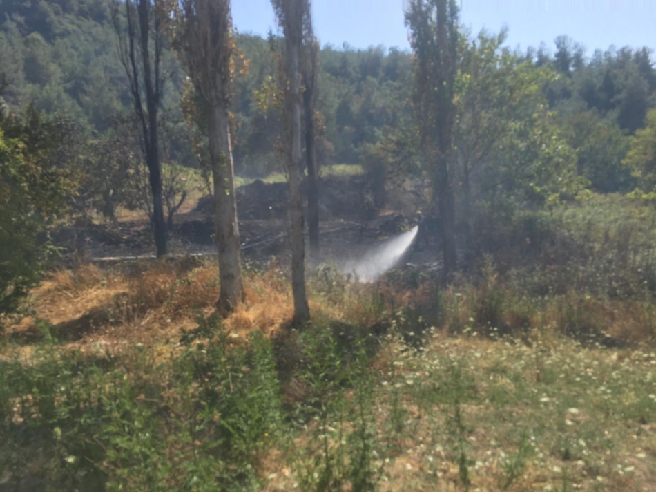 Meyvelik alanda çıkan yangın ormana sıçramadan söndürüldü